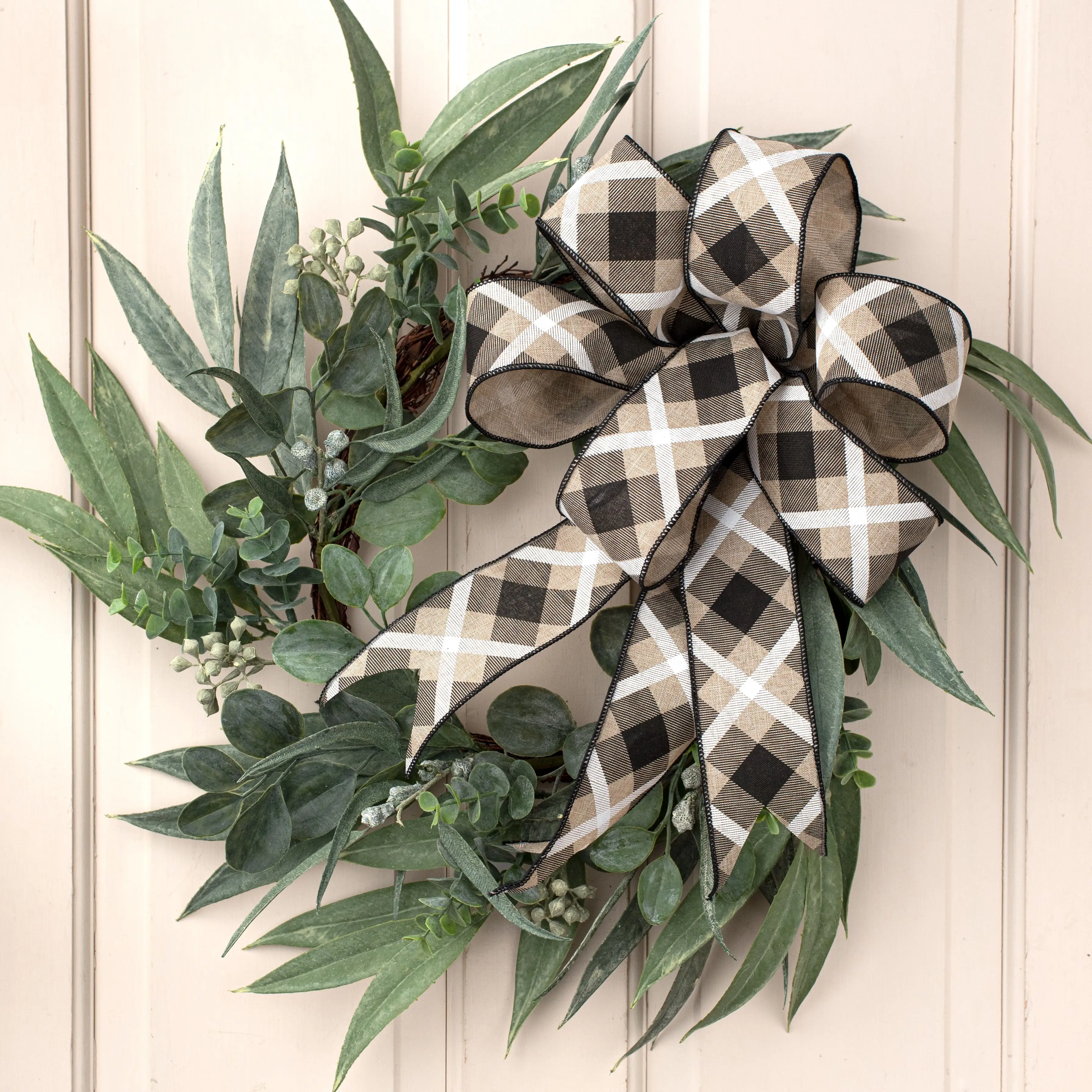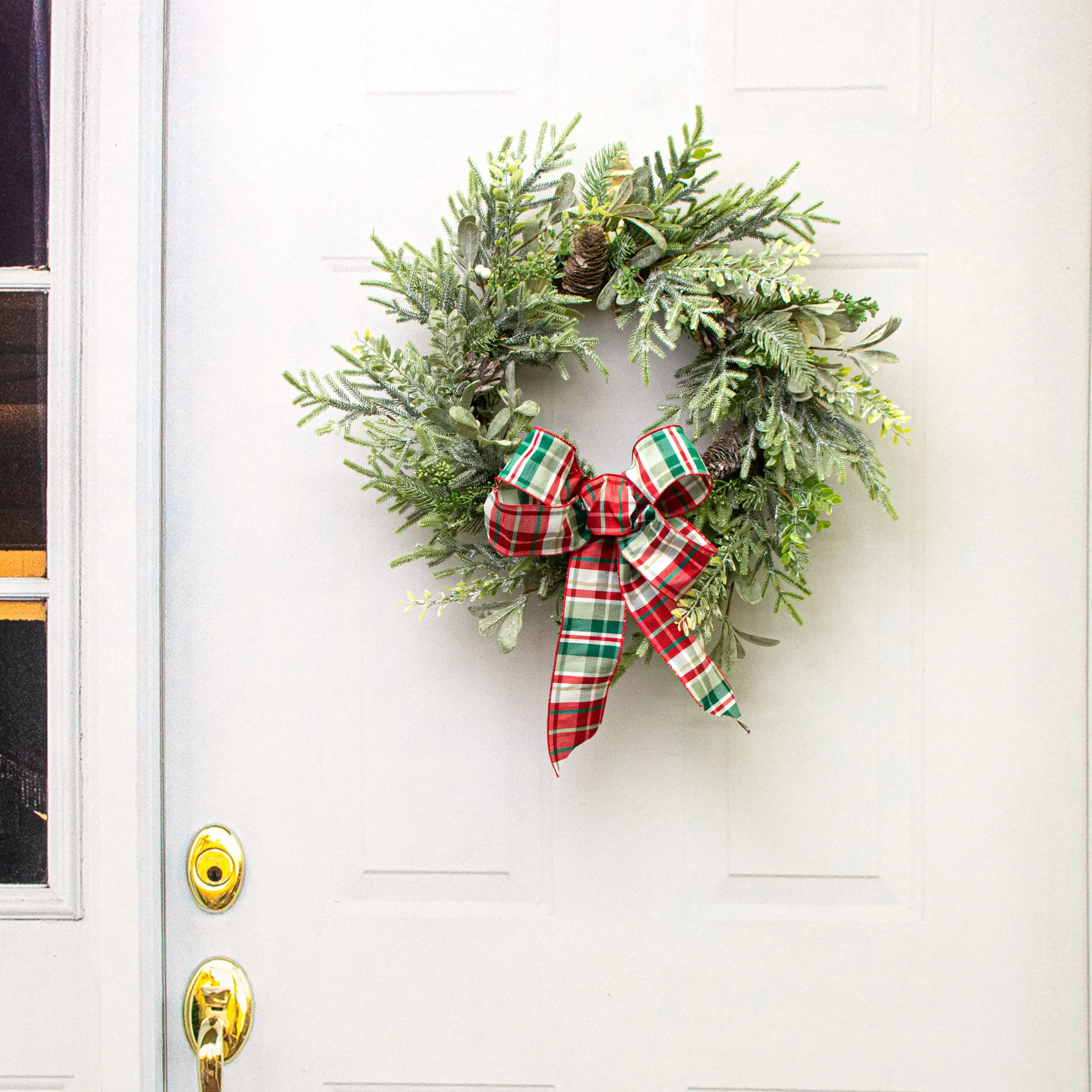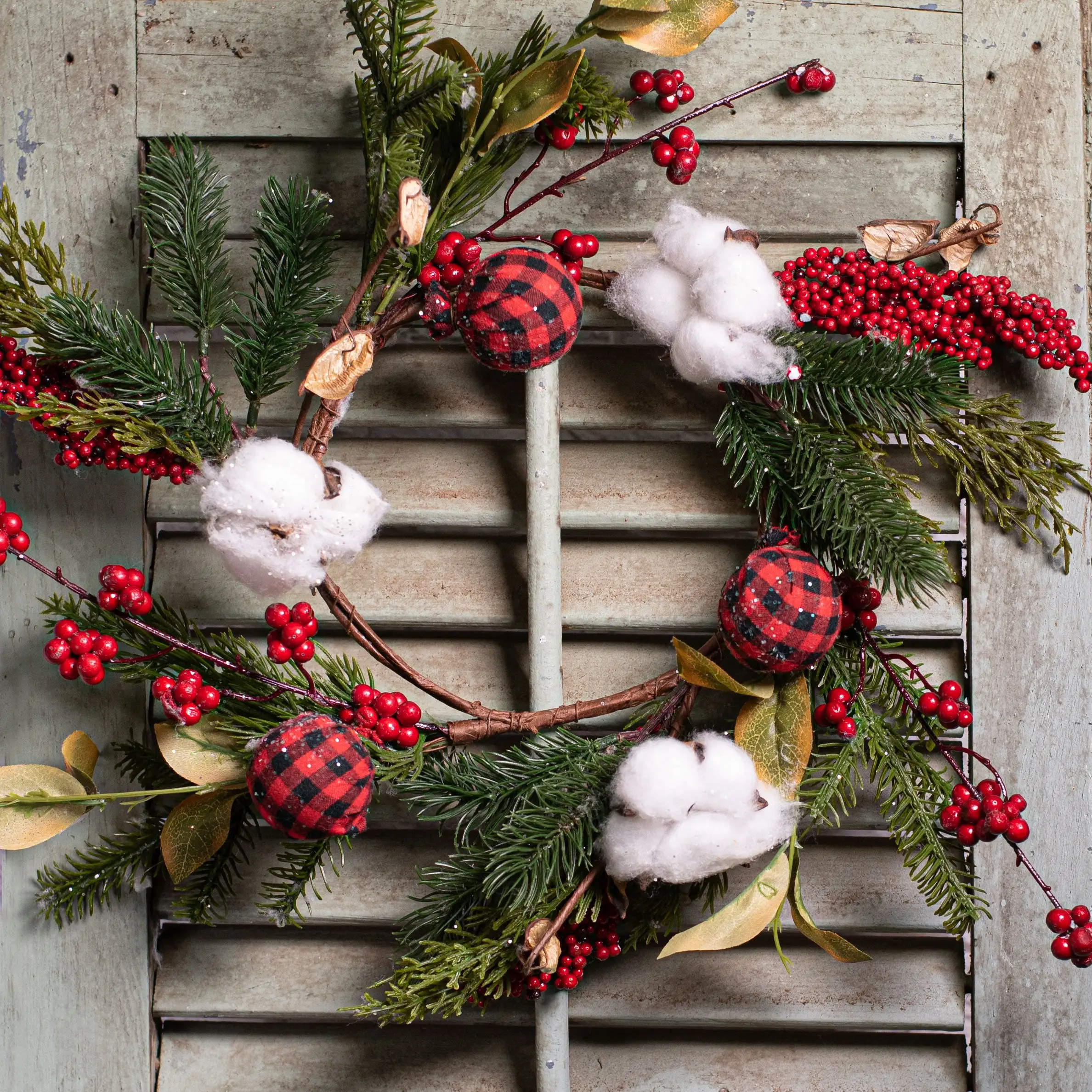 16" Holiday Buffalo Plaid Balls & Cotton Wreath