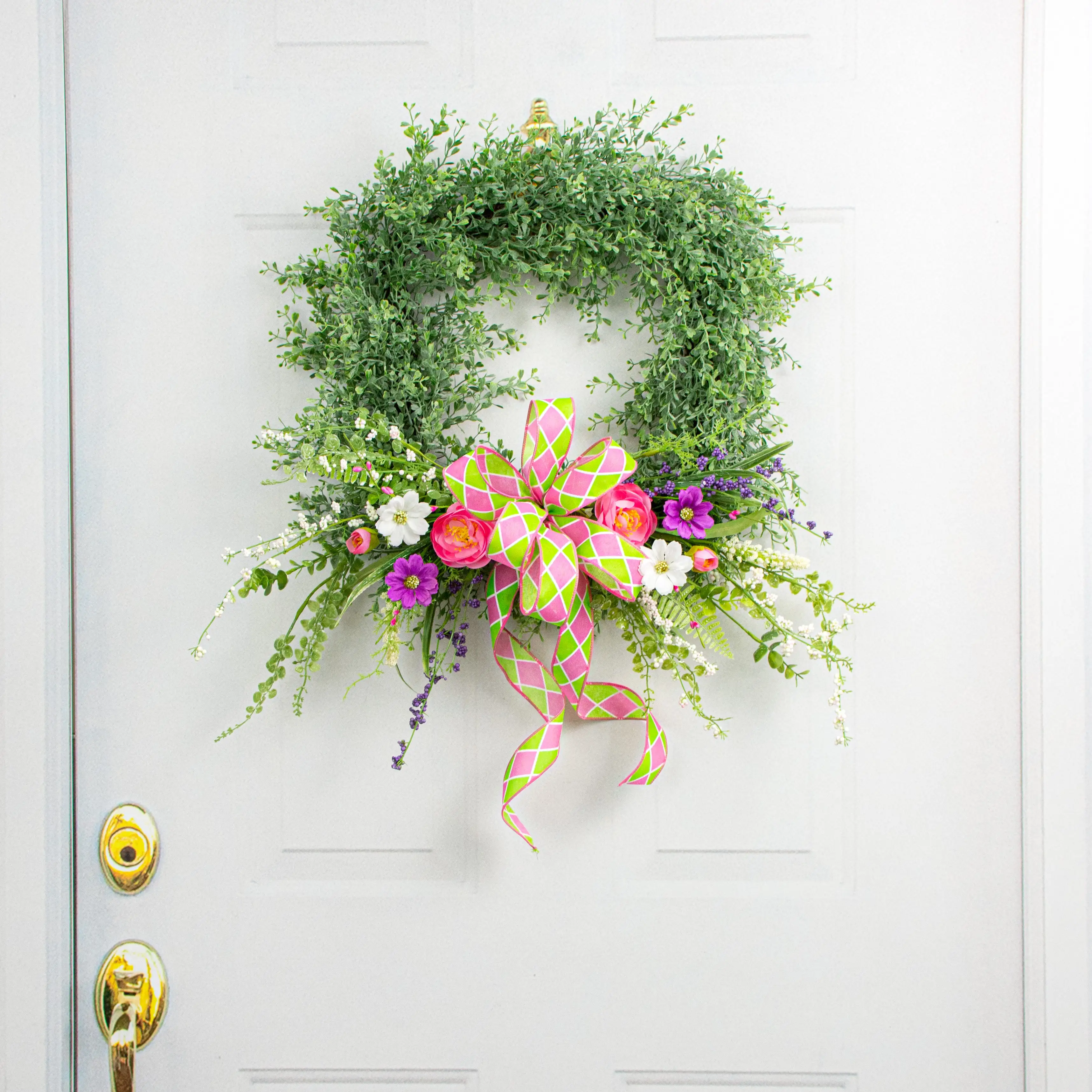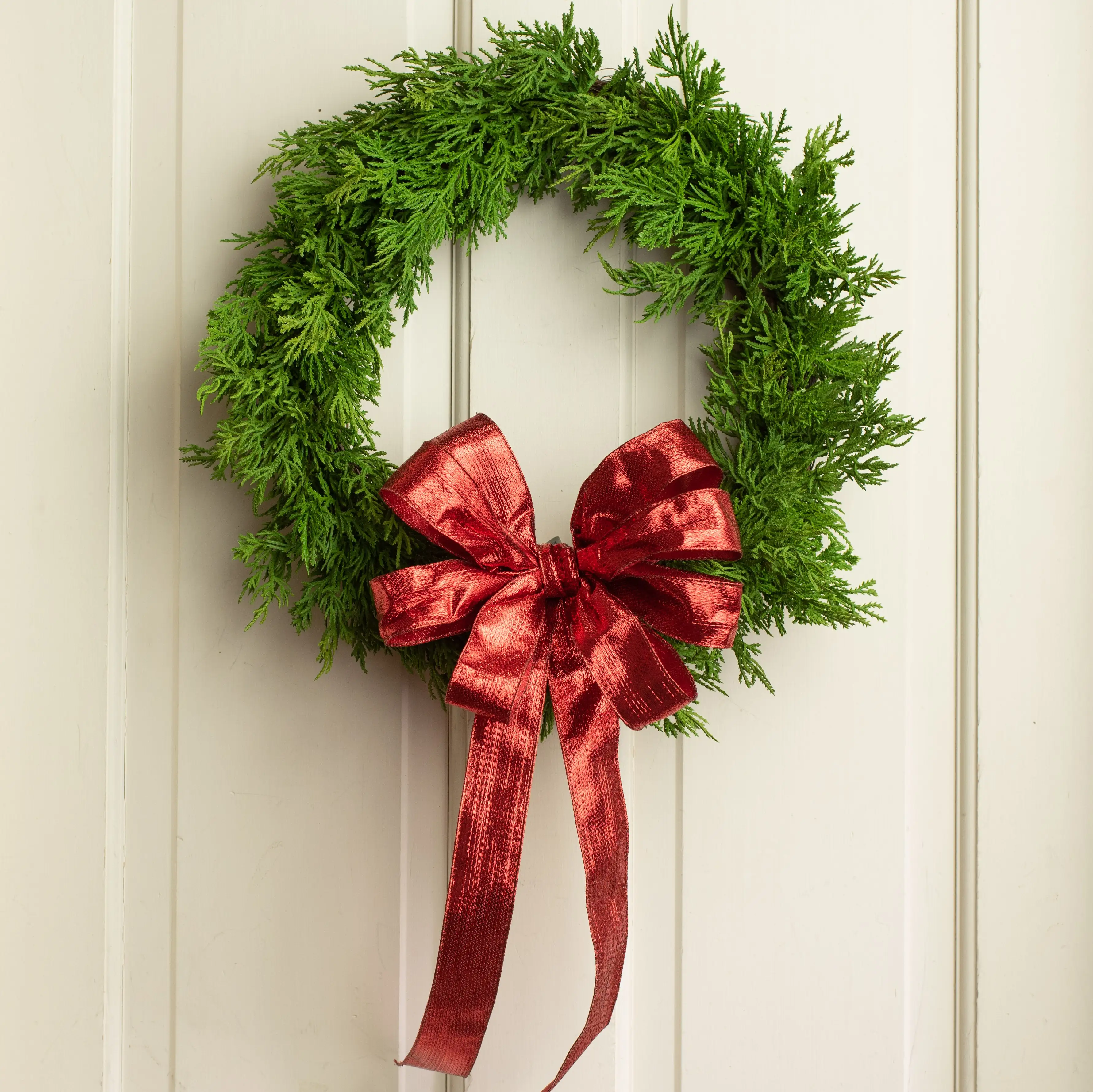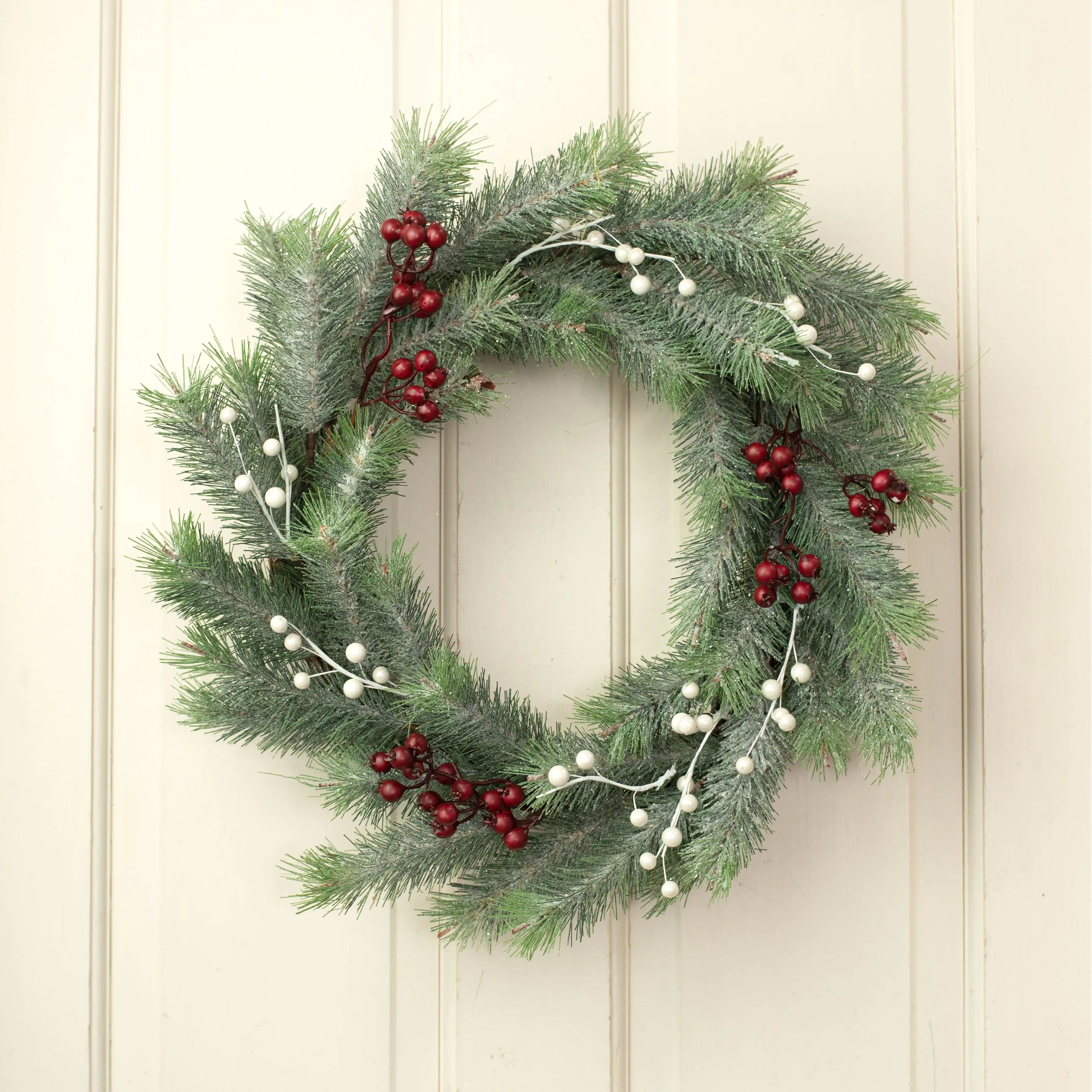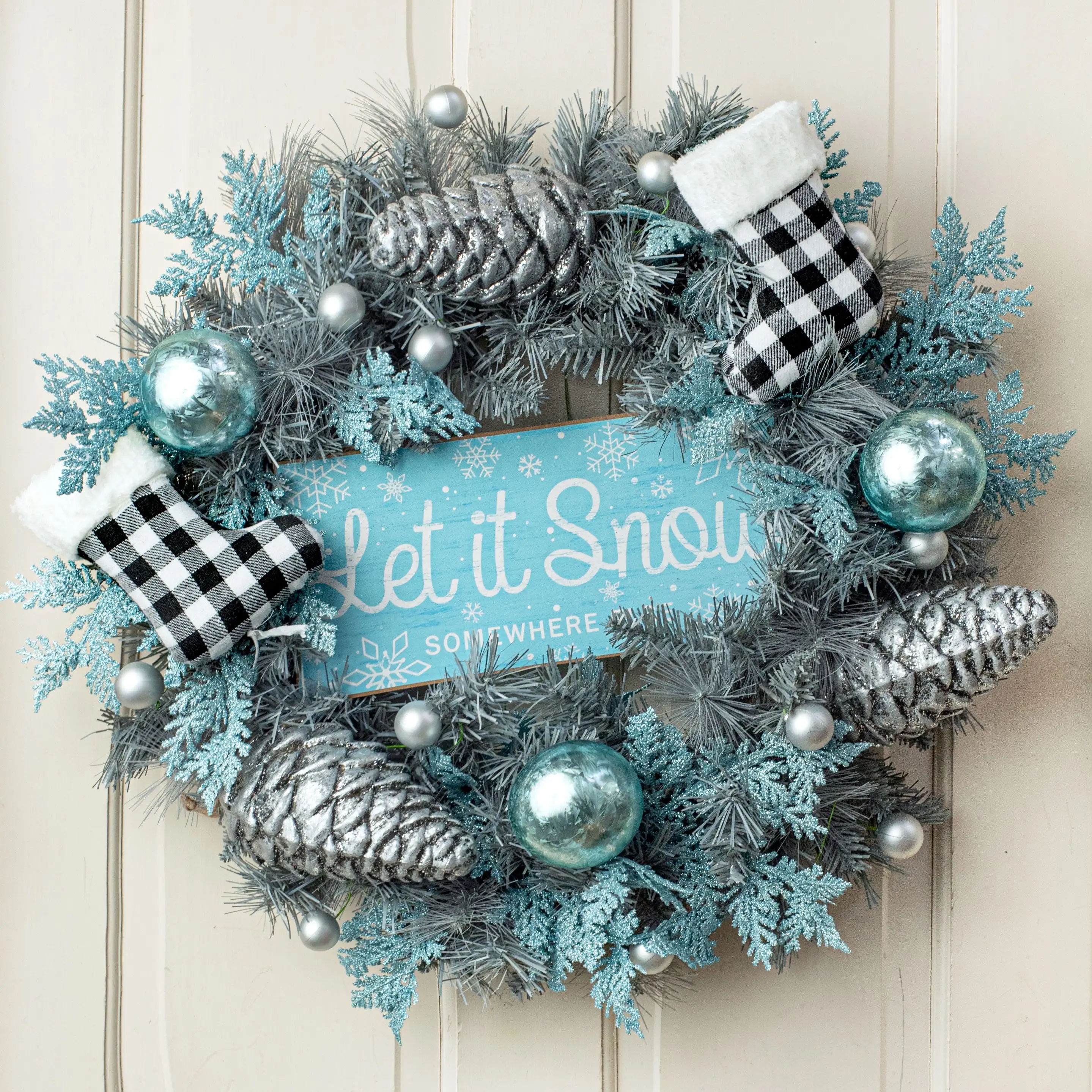 16" Holiday Buffalo Plaid Balls & Cotton Wreath
