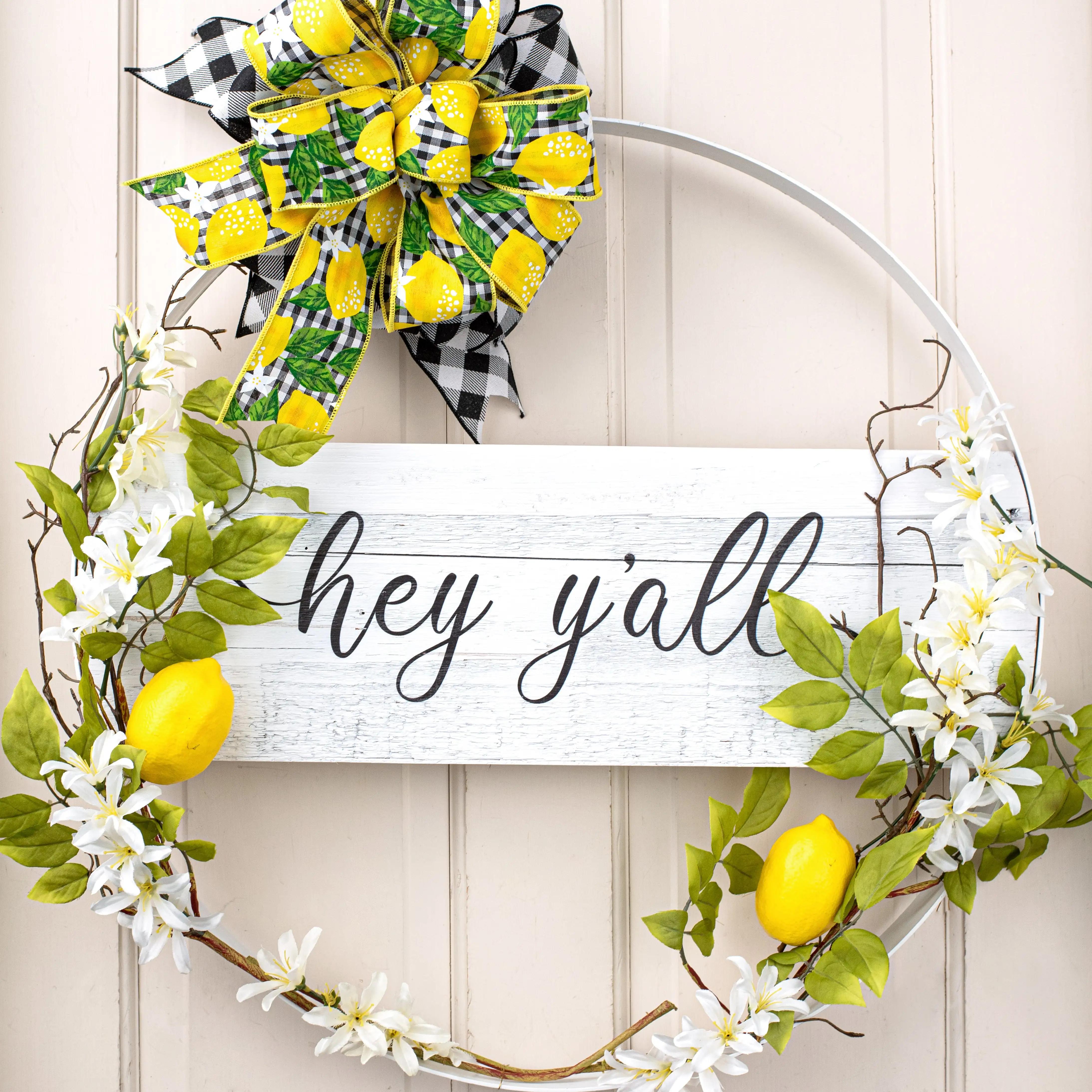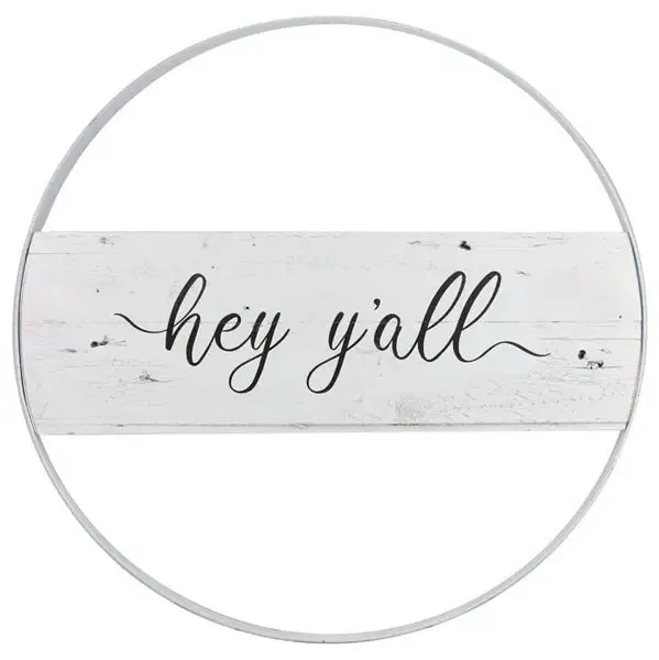 24" Metal Hoop Ring Sign: Whitewash Hey Y'all