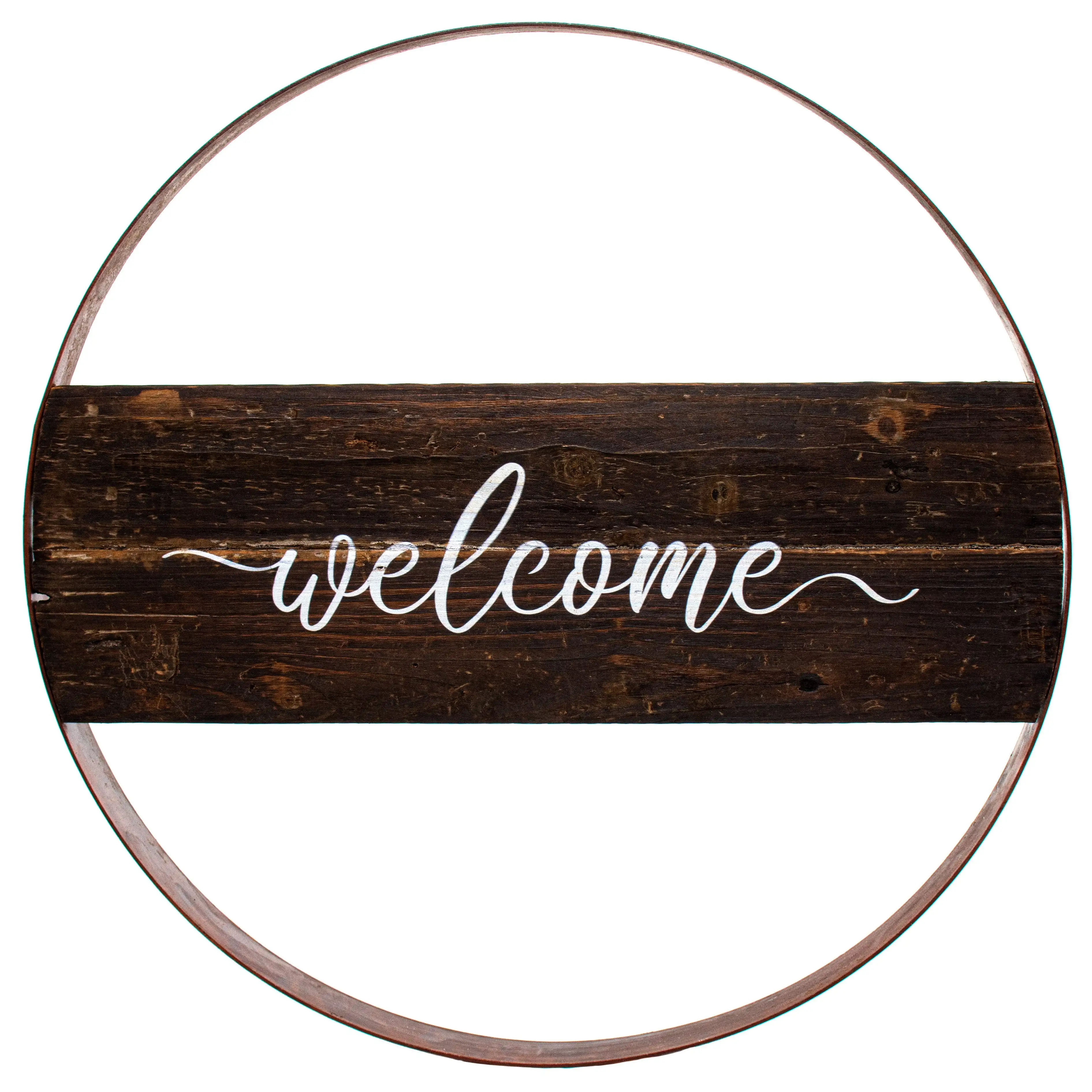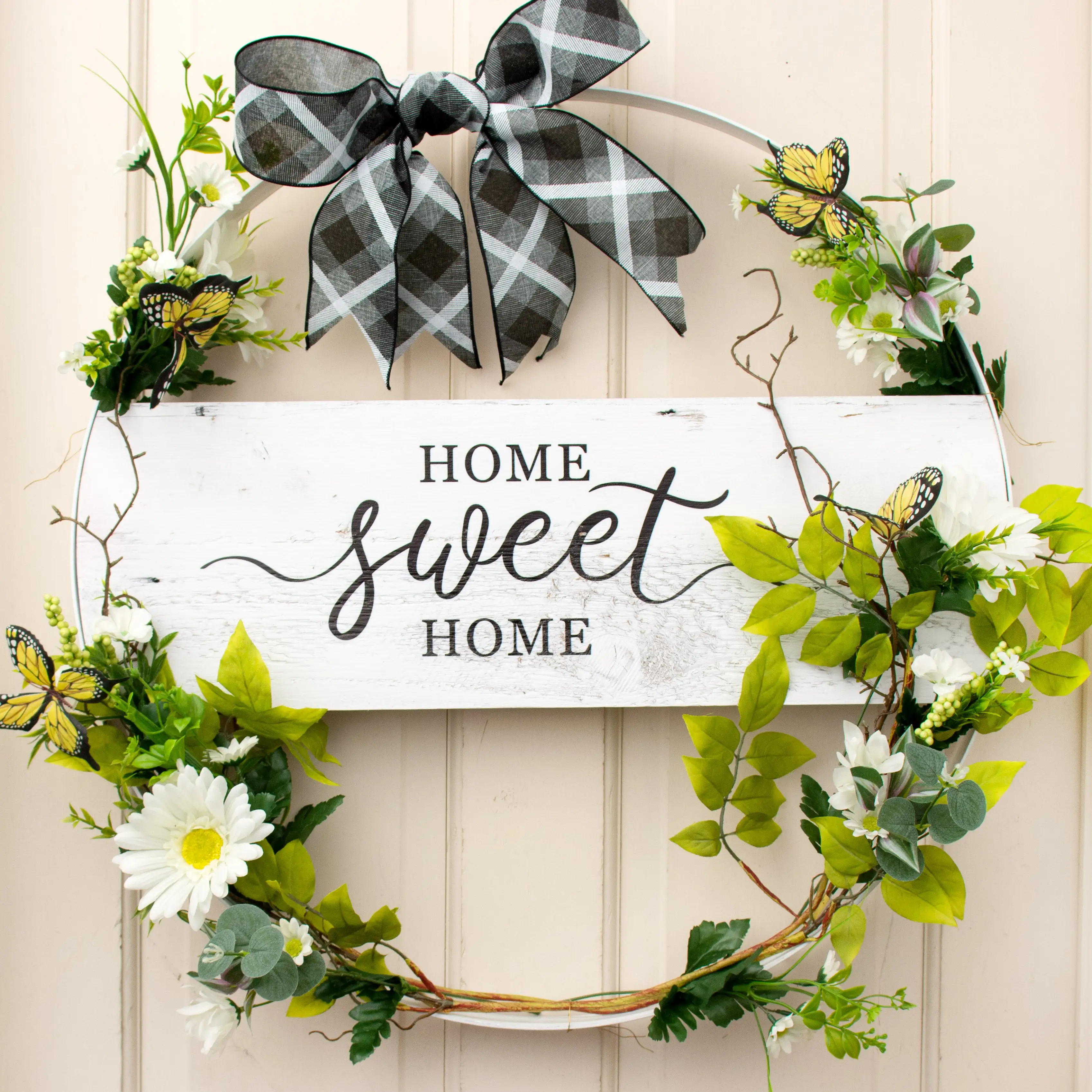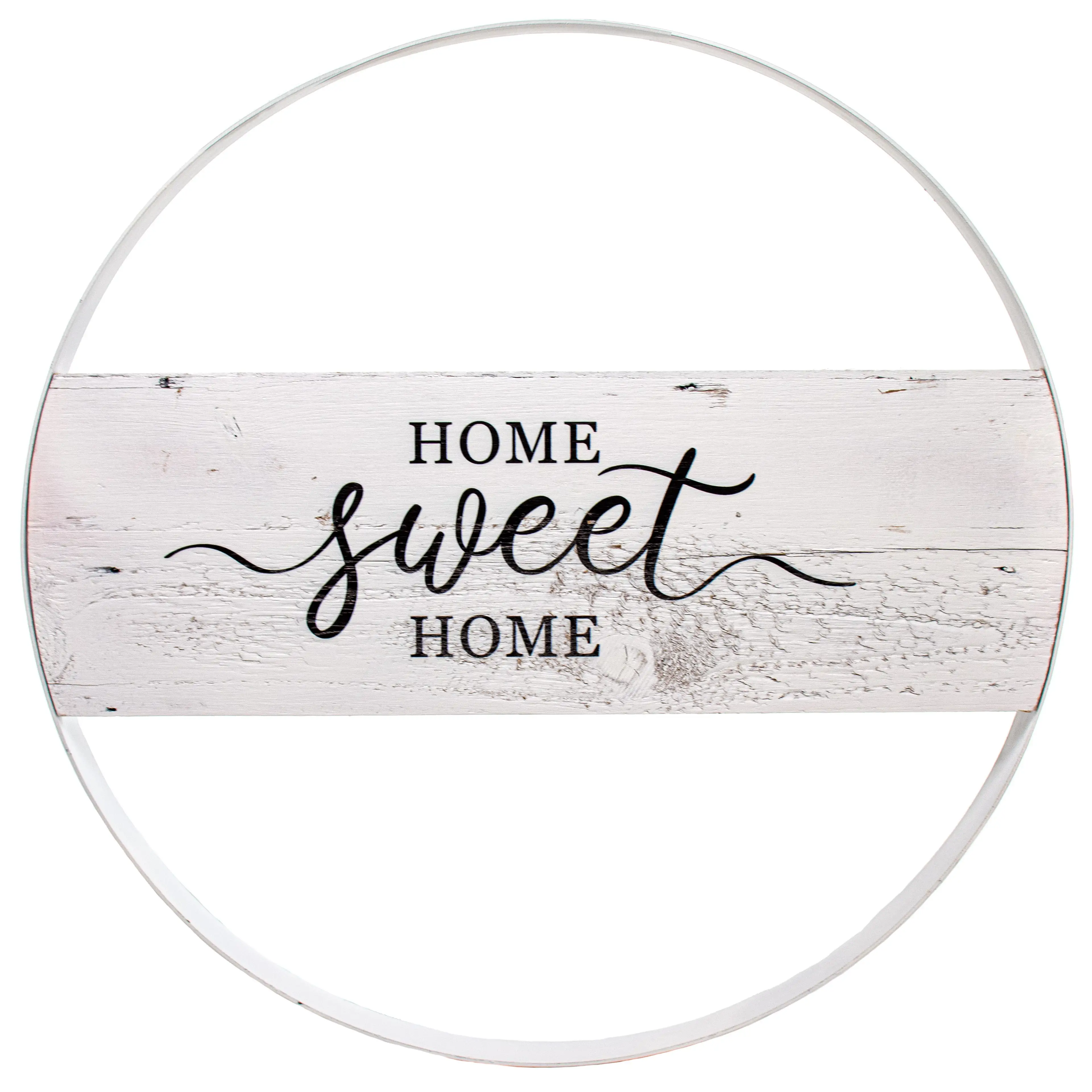 24" Metal Hoop Ring Sign: Whitewash Home Sweet Home