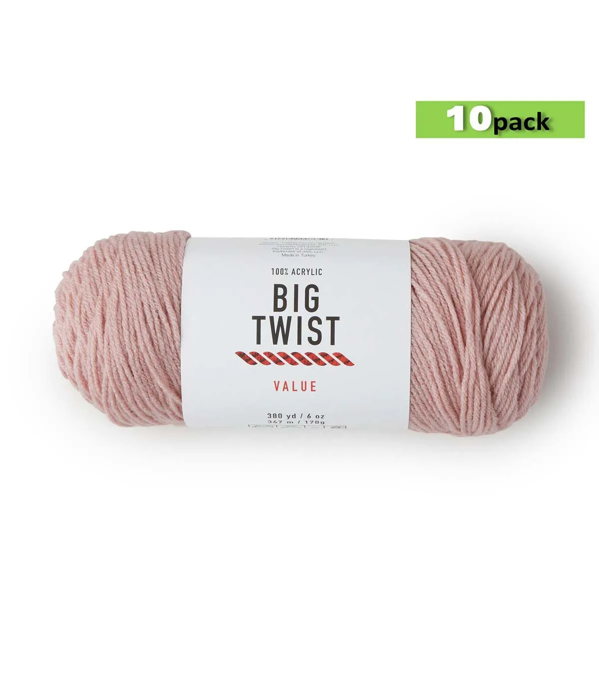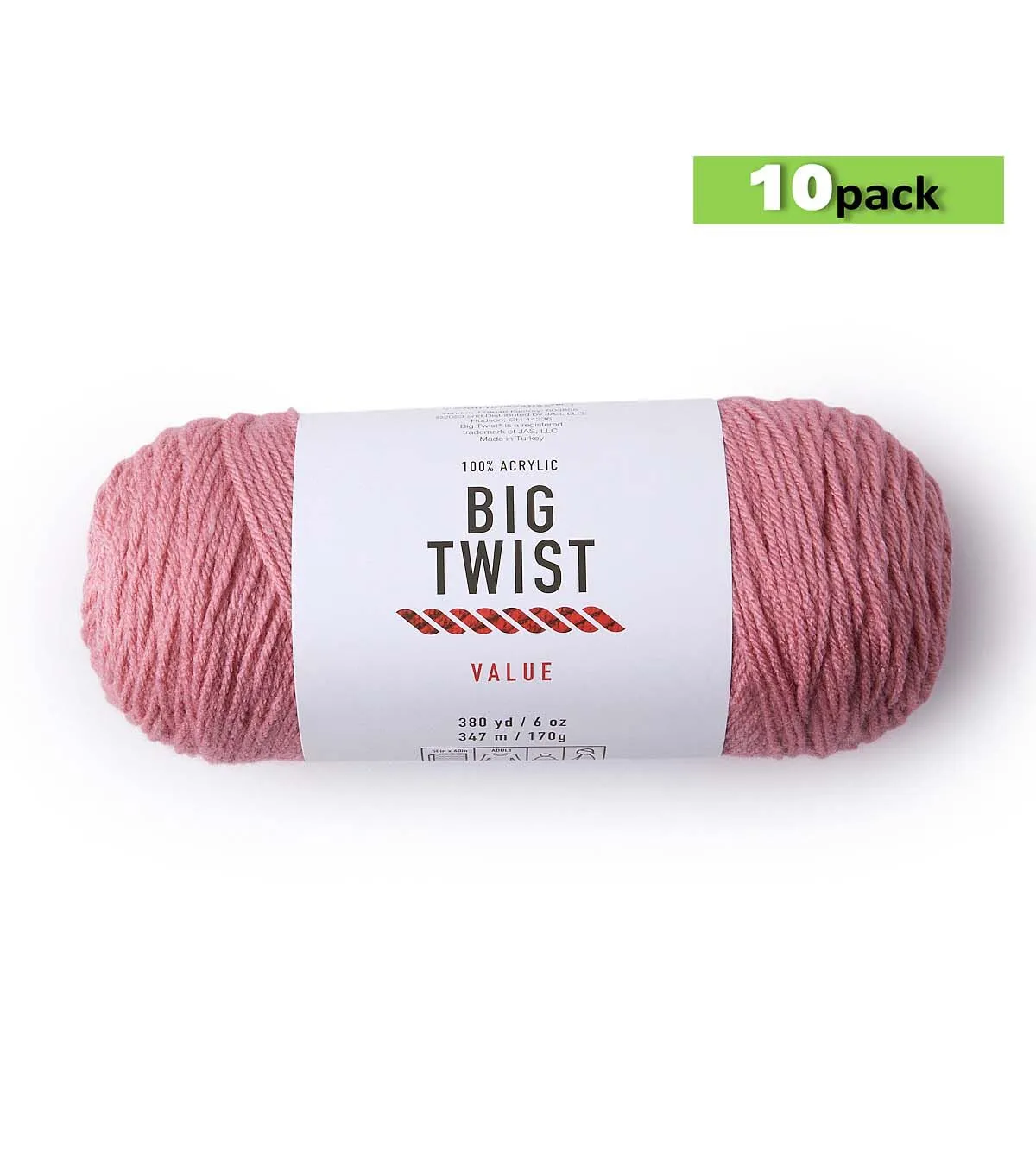 10pk Solid Rose Medium Weight Acrylic 380yd Value Yarn by Big Twist