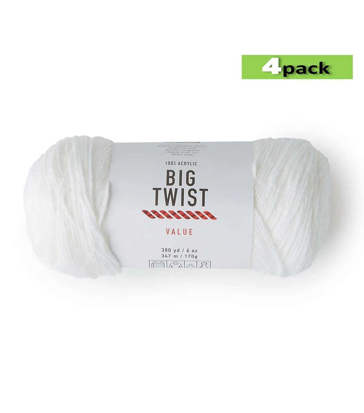 4pk Solid White Medium Weight Acrylic 380yd Value Yarn by Big Twist
