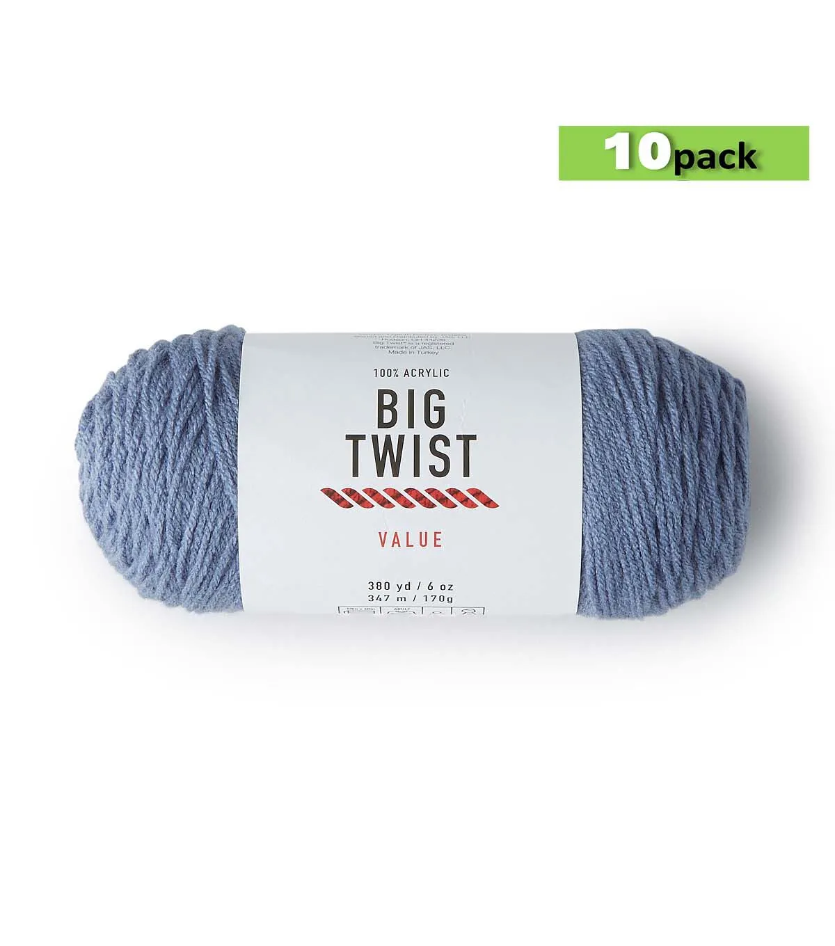 10pk Solid Denim Medium Weight Acrylic 380yd Value Yarn by Big Twist
