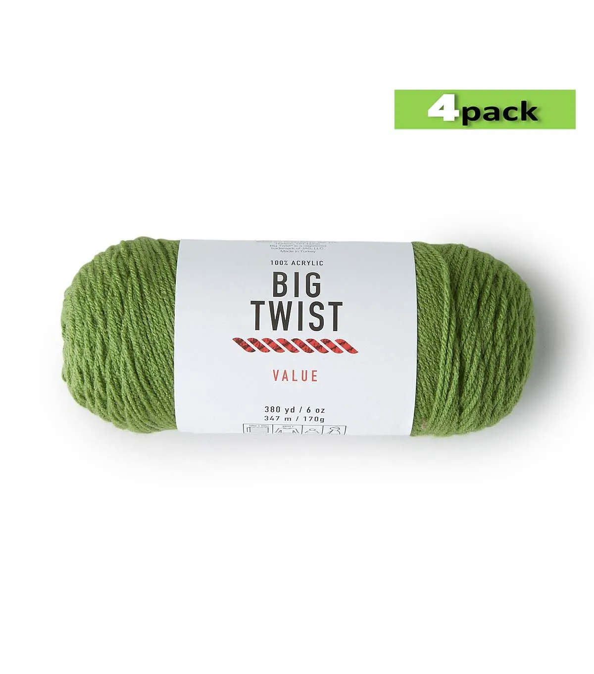 4pk Solid Green Medium Weight Acrylic 380yd Value Yarn by Big Twist
