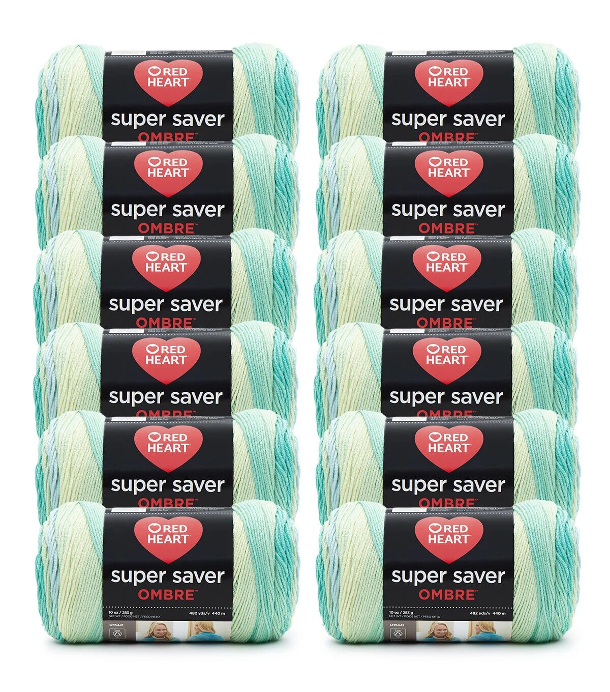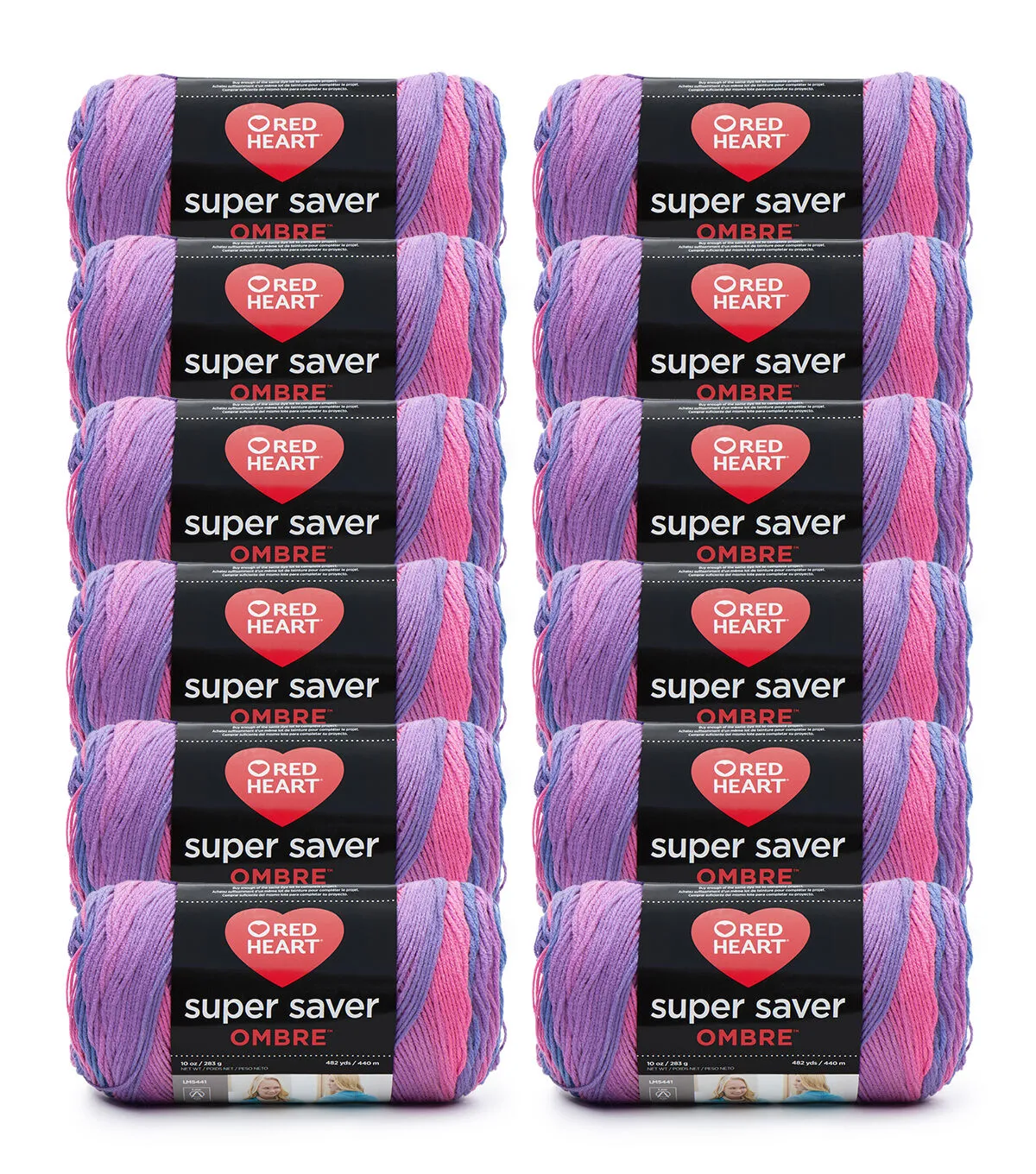 Red Heart Super Saver Ombre 482yds Worsted Acrylic Yarn 12 Bundle