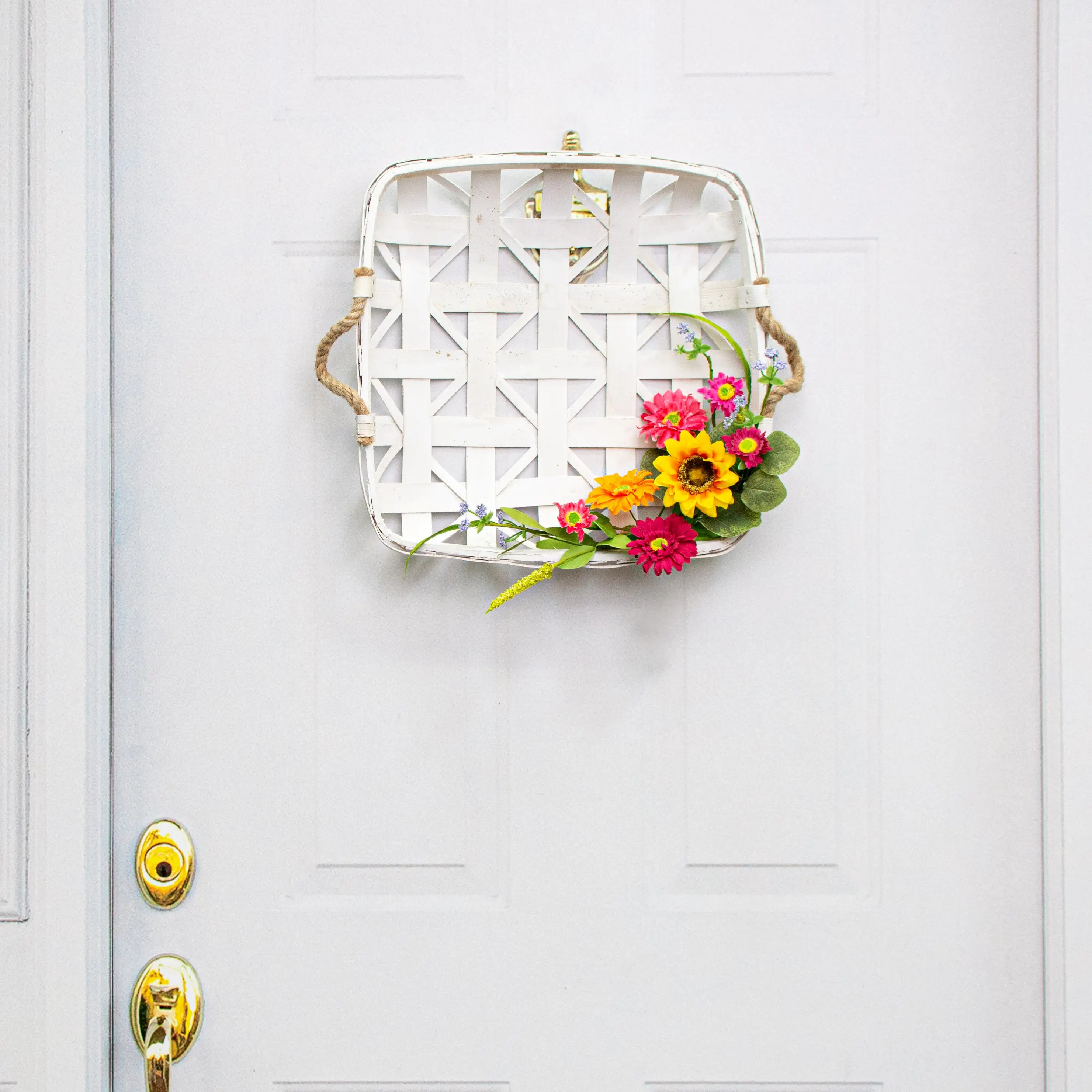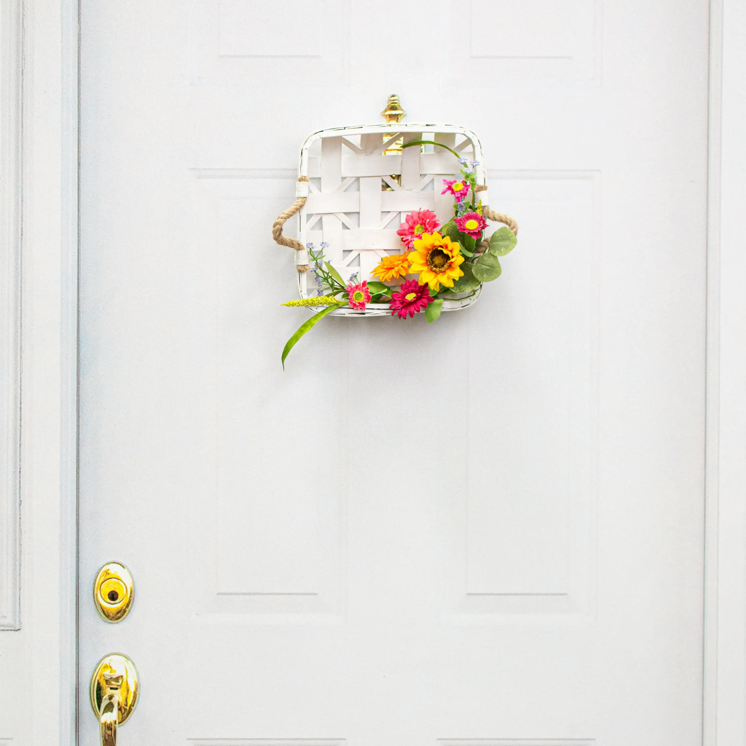 These square tobacco baskets, made from woven wood chip strips, have a distressed white wash and thick, jute rope handles. They are great to display on their own, but we love adding florals. Use them singularly or nest them for a layered look. Hang them in a grouping on the wall for that farmhouse feel.