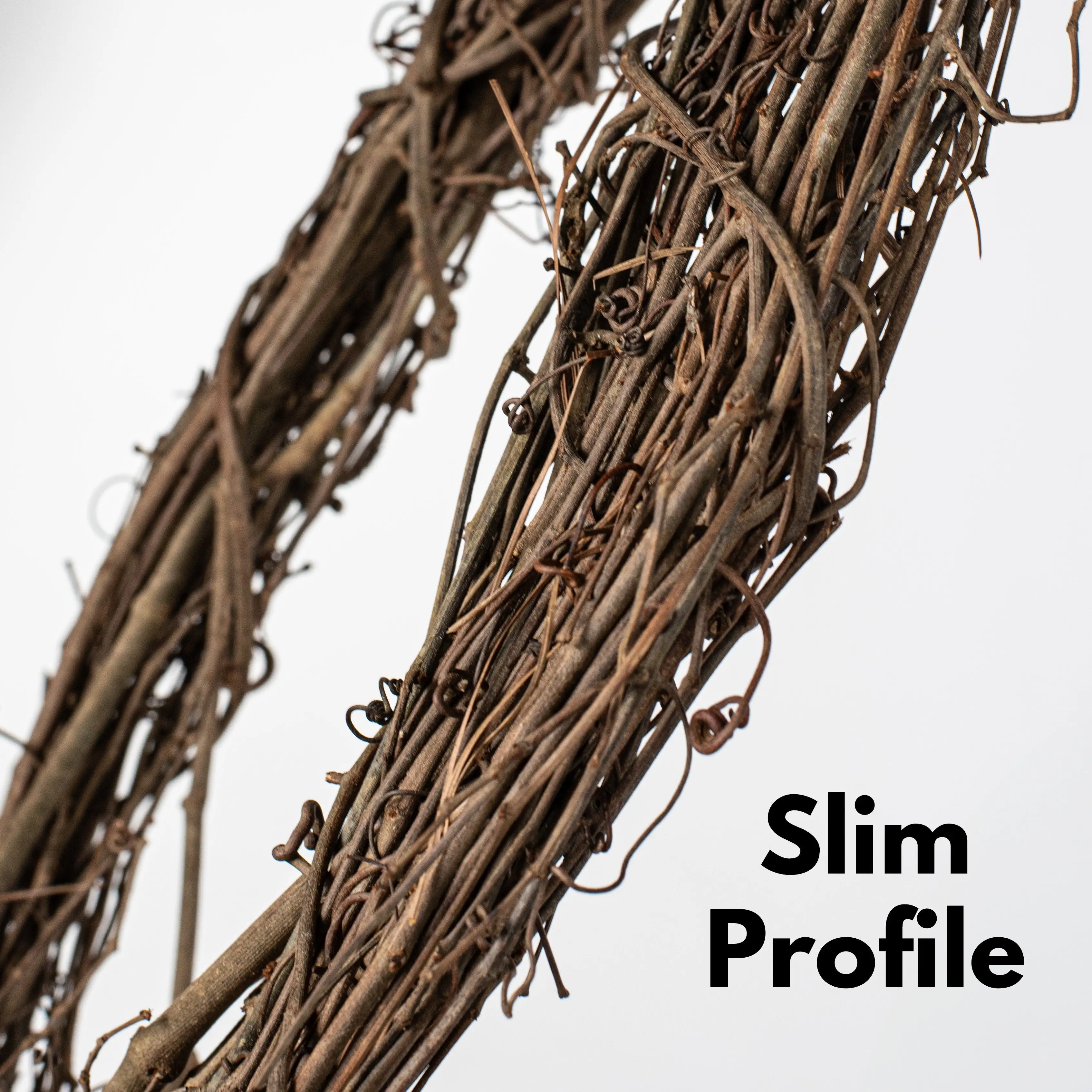 These grapevine wreaths are all-natural and bound together by the interweaving of their own material - no wire is used. Sought after by designers, the tightly-woven vines provide both a secure base for florals and a natural look that is universally attractive throughout all seasons.