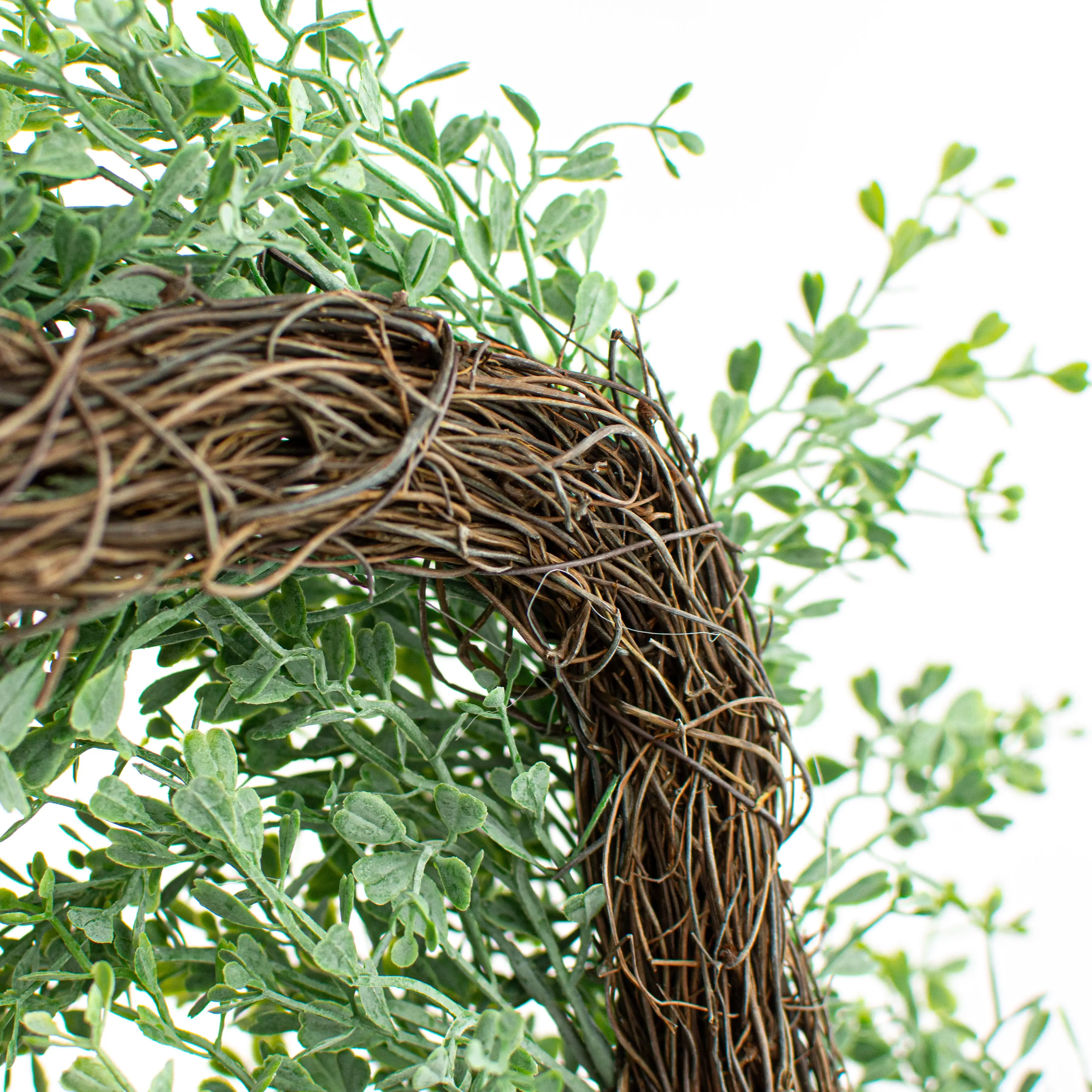 This wreath has an angel vine base formed into a square. Fluffy boxwood with mini leaves in a powdery, sage green shade makes this wreath lush enough to display with just a simple bow. Alternatively, add florals - use our filler picks with already-composed, attractive selections to make it easy.