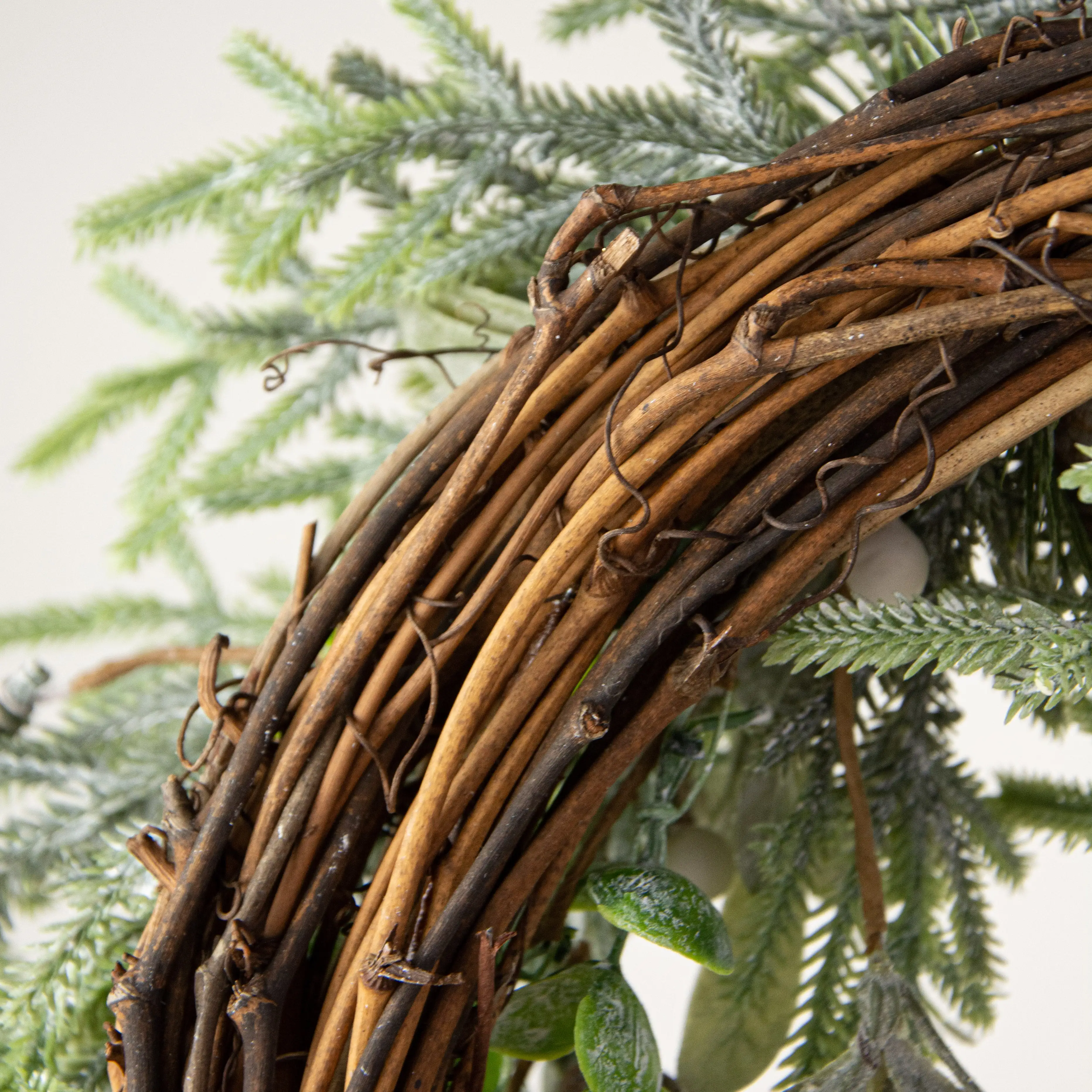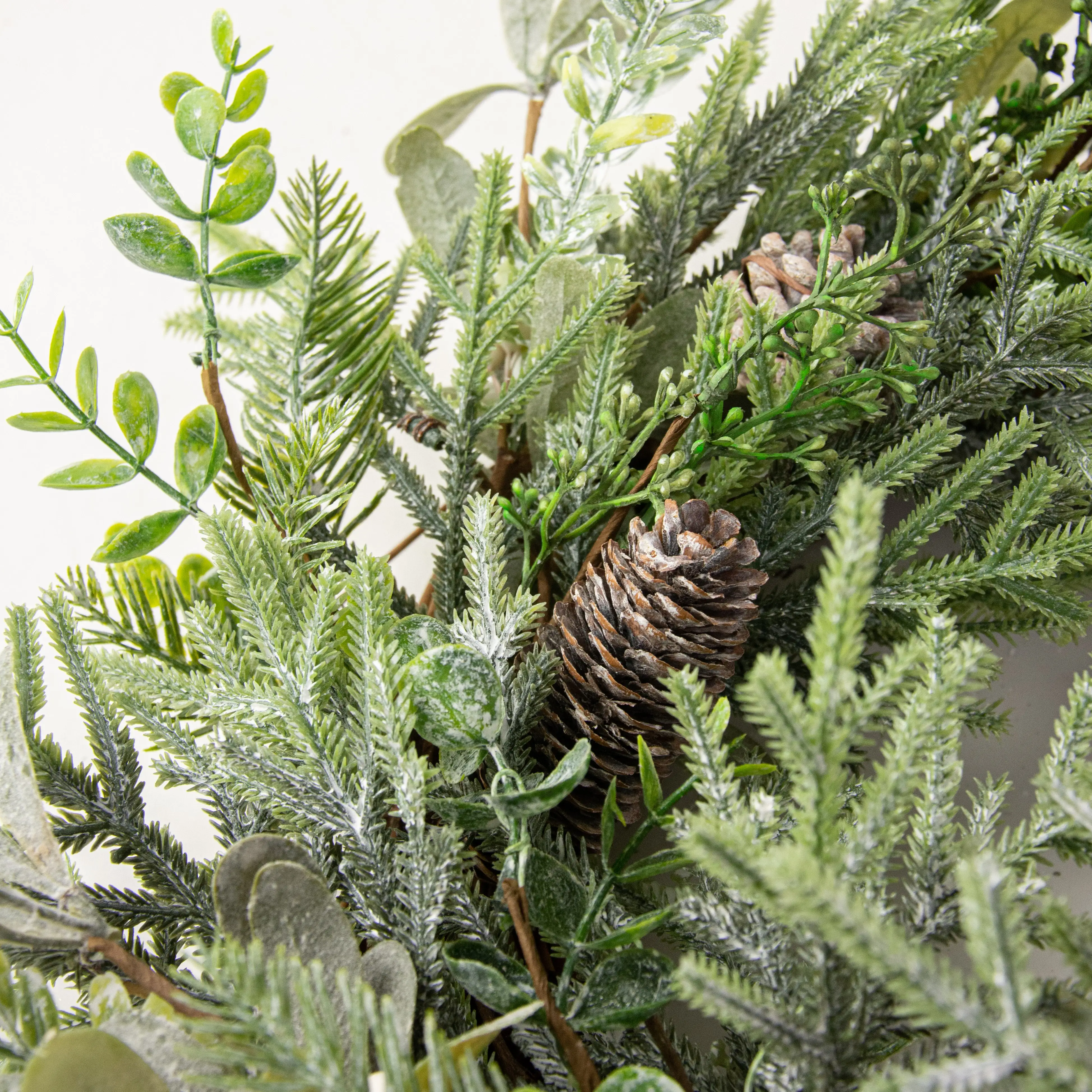 - Plastic foliage, Real pinecones, Real grapevine