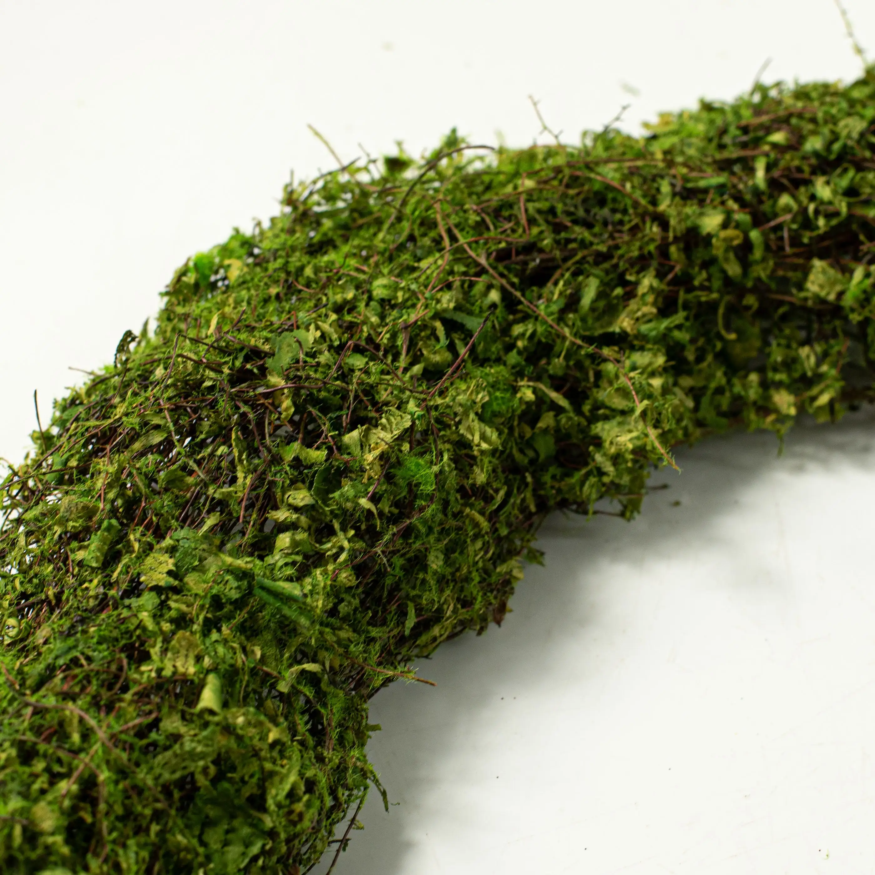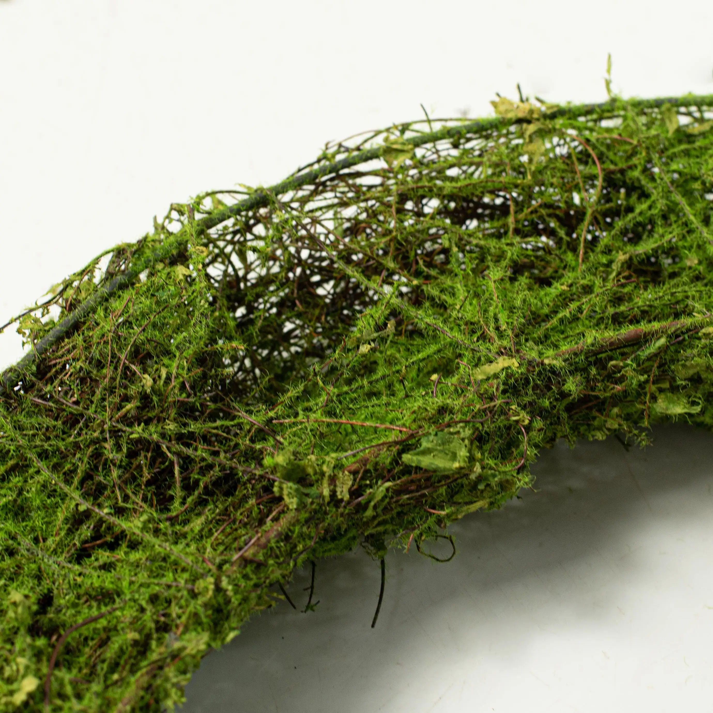 This long oval wreath has a springtime woodland look. Its lightweight frame is covered in dense angel vine and flocked with faux moss and lichen. The frame is flat on the back so the wreath lays nicely against doors and walls.