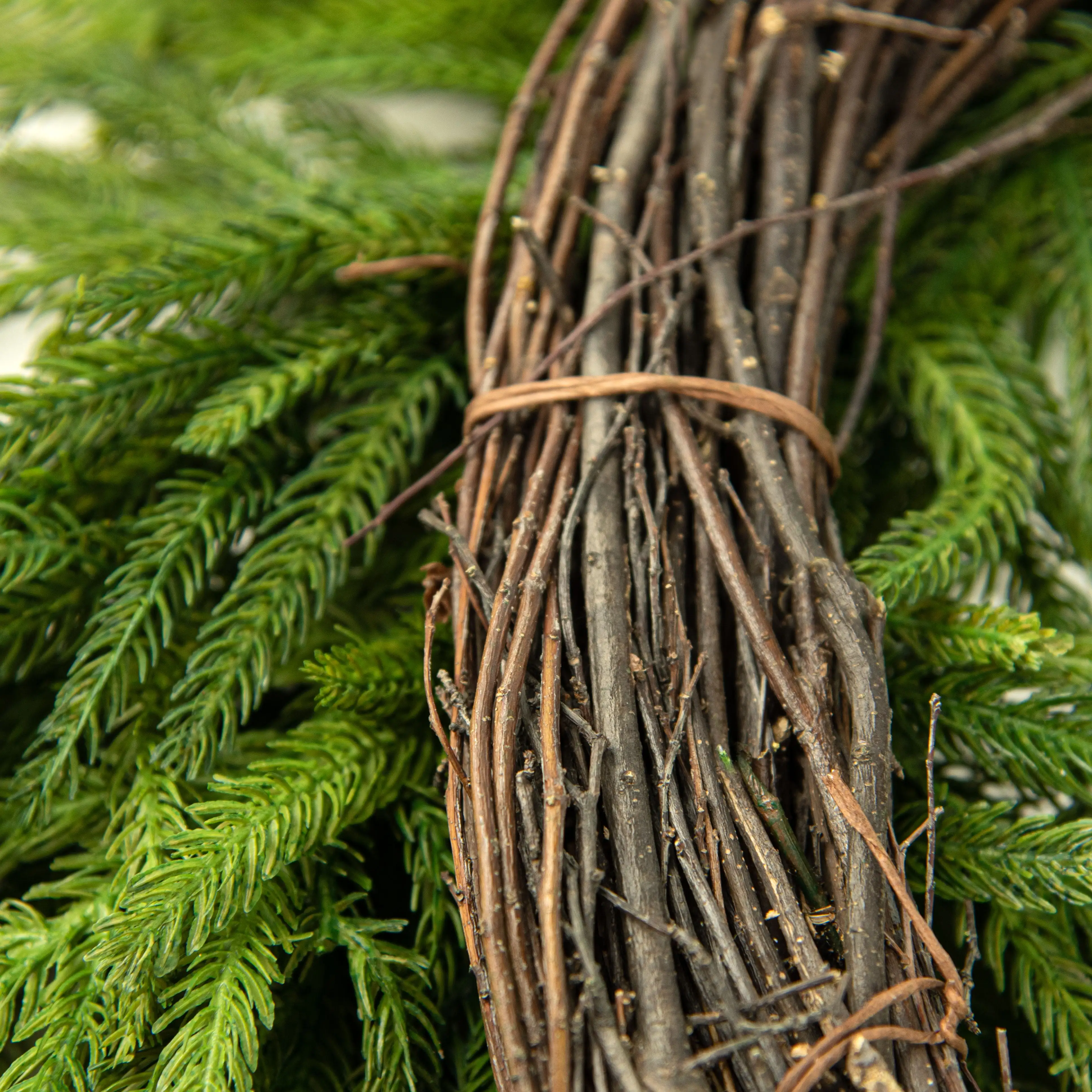 Expect guests to walk up and smell this voluminous wreath because it looks so realistic! Include red berries or buffalo plaid accents to make it your own.