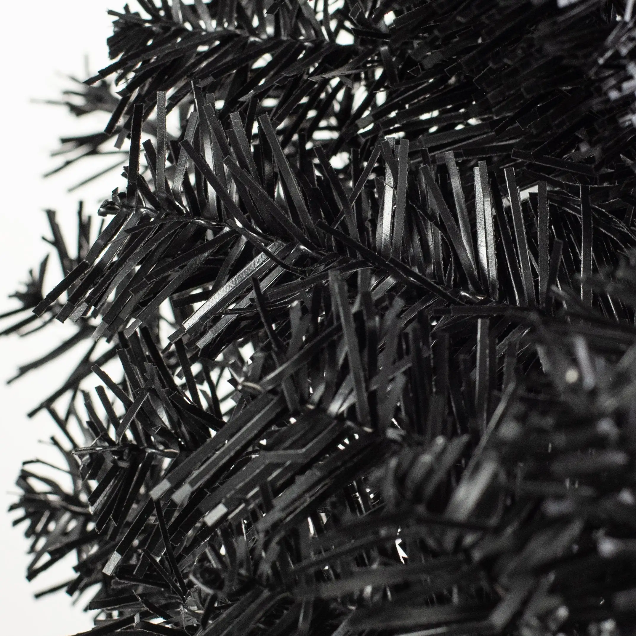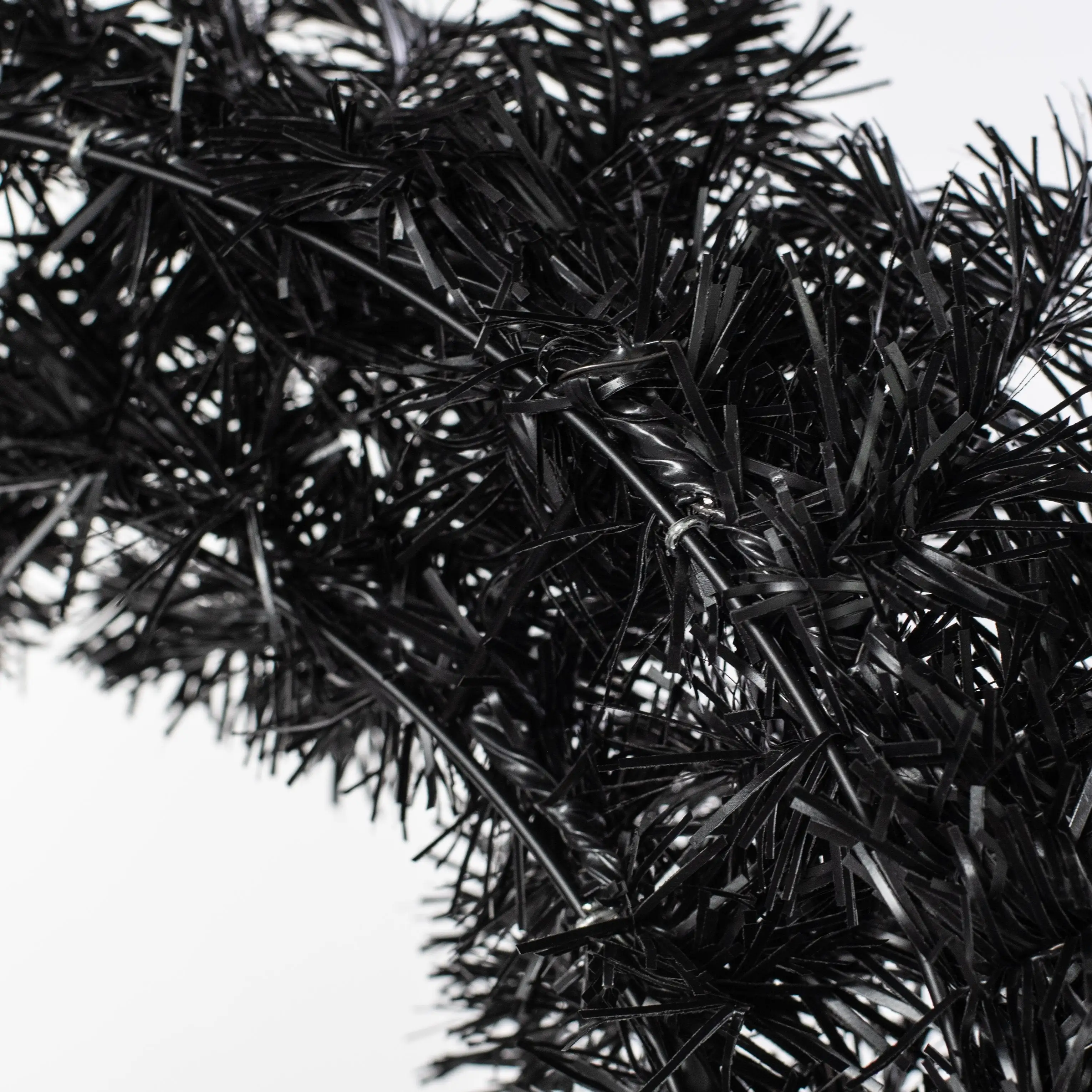 This wreath is made with shiny, black PVC pine. Each of the PVC pine sprigs is wired for shaping, which makes adding ribbon and accessories a snap. The wreath is built on a metal frame.