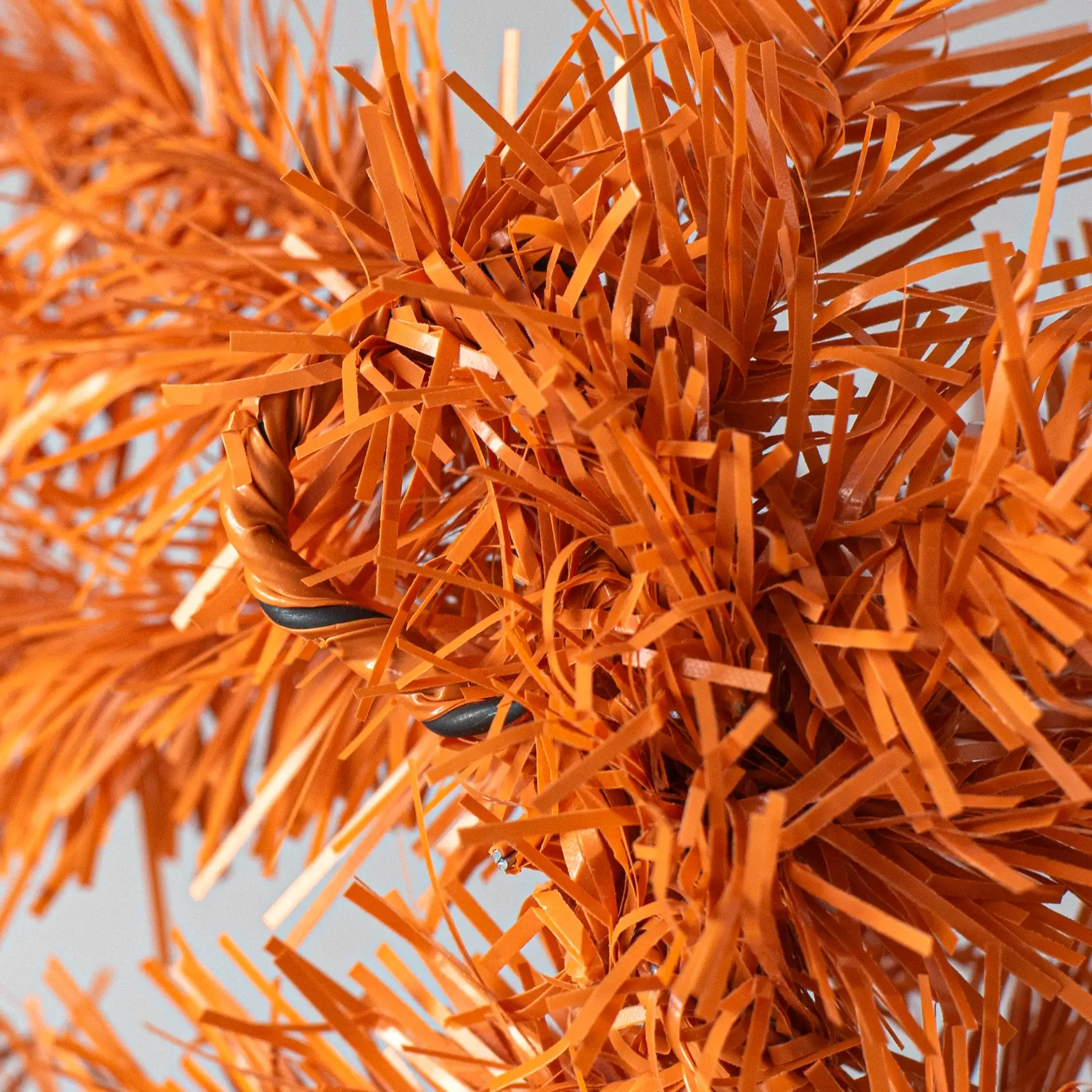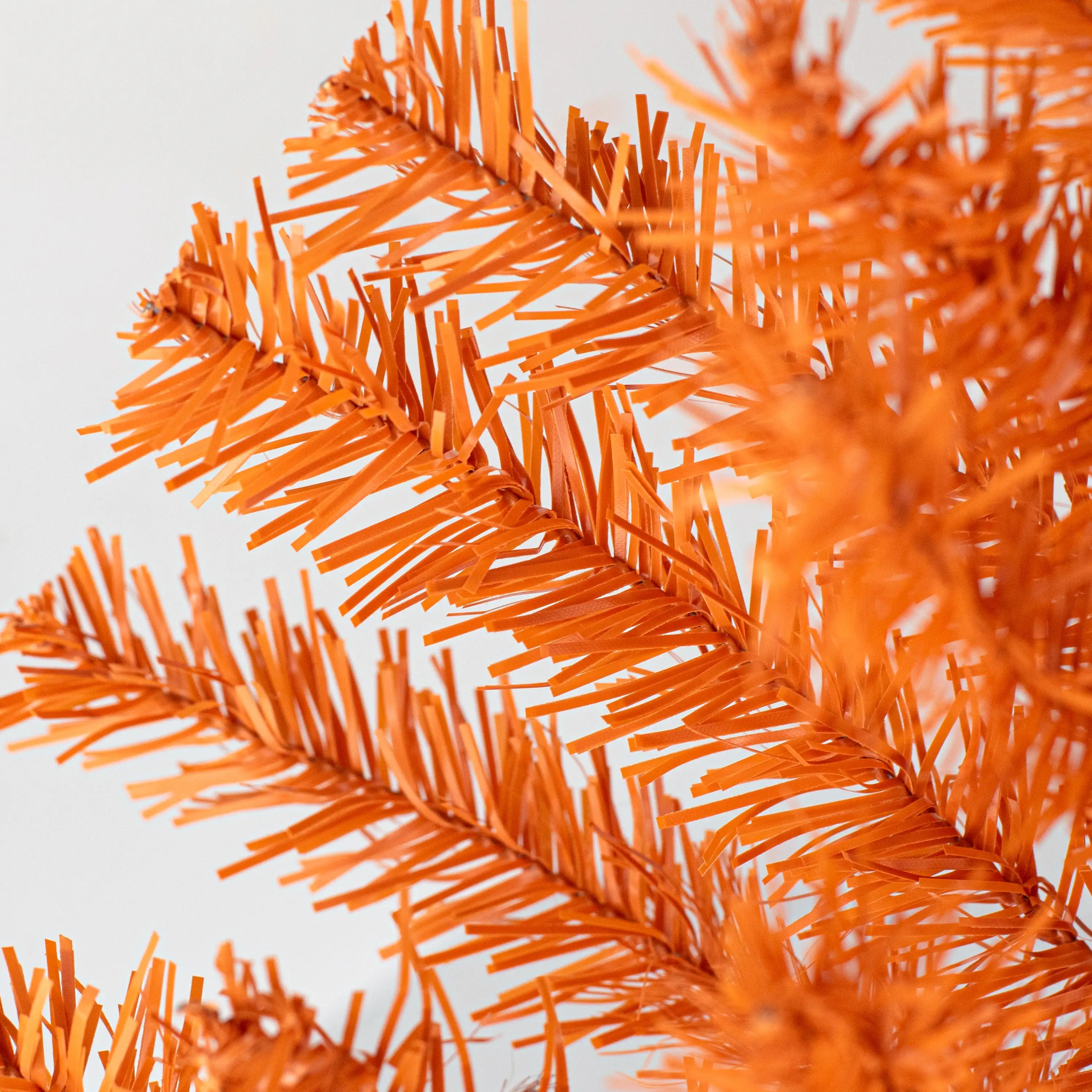 This teardrop swag has a wired spine with orange wired PVC pine tips. It is meant to be used as a base for ribbons, mesh, sprays and accessories - the pine leaves room for these additions, and their wired structure makes them ideal for attaching them.