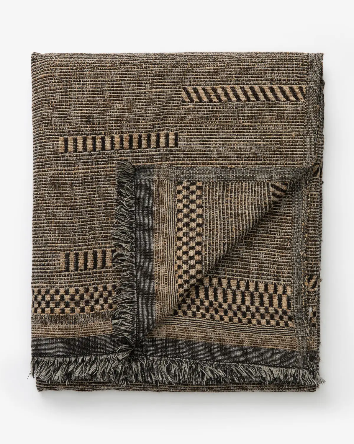 With a sophisticated blend of wool and silk, the Anwar Woven Throw is both cozy and elegant. Its neutral and moody palette allows the varied patterns to shine, adding effortless detail and warmth to your living room or bedroom.