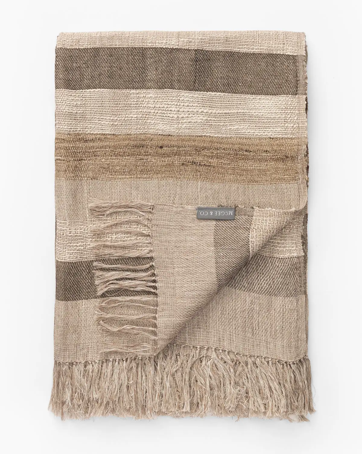 Crafted from a sophisticated blend of linen, cotton, and silk, the Ashwood Throw is both beautiful and functional. Draped over a sofa for an added layer of texture, its cool color palette finishes off your space with an effortless look and feel.