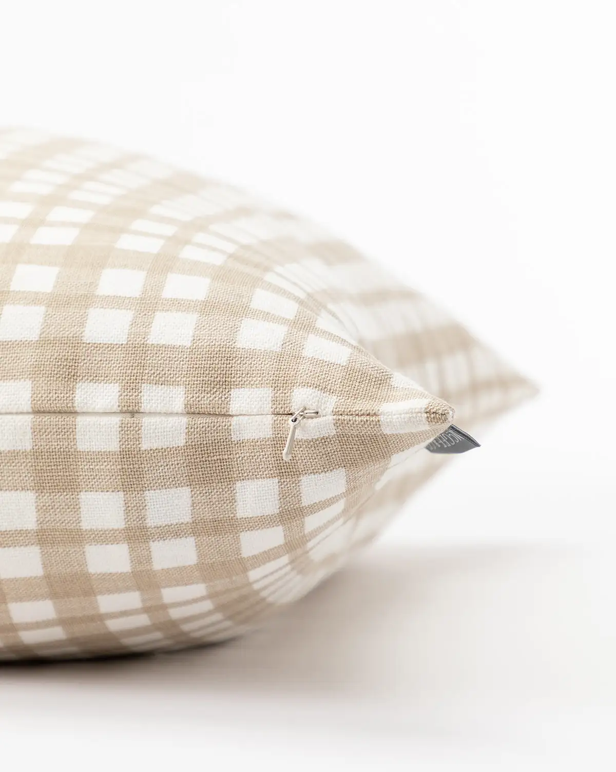 Our Edison Pillow Cover takes neutrals to a new height with a unique take on gingham print. Digitally printed for a crisp, complete pattern, this pillow adds warmth and dimension while catching the eye.