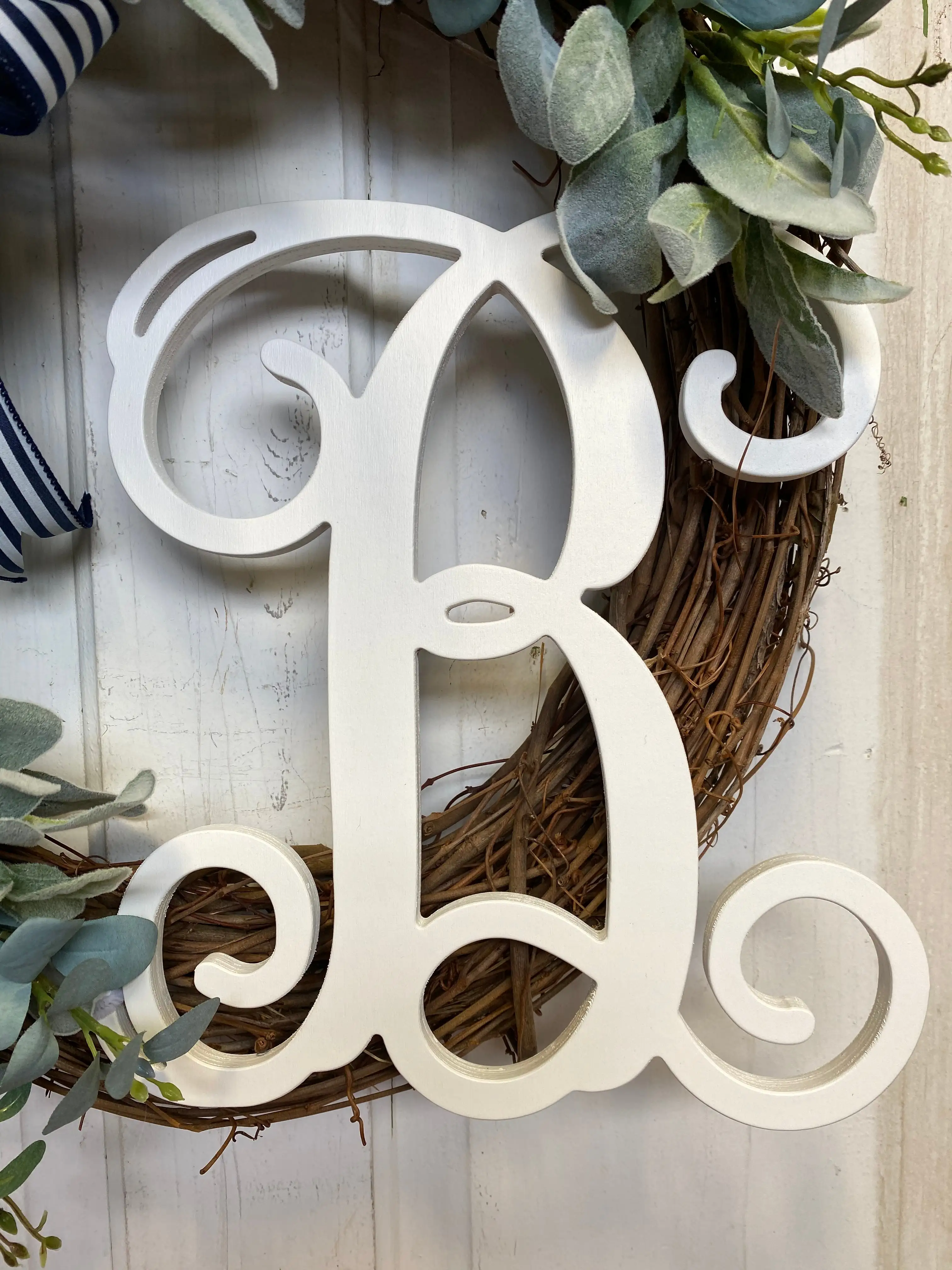 Widest point of wreath is 22�� Monogram Lambs Ear wreath~Farmhouse wreath~Fall wreath~Rustic Decor wreath