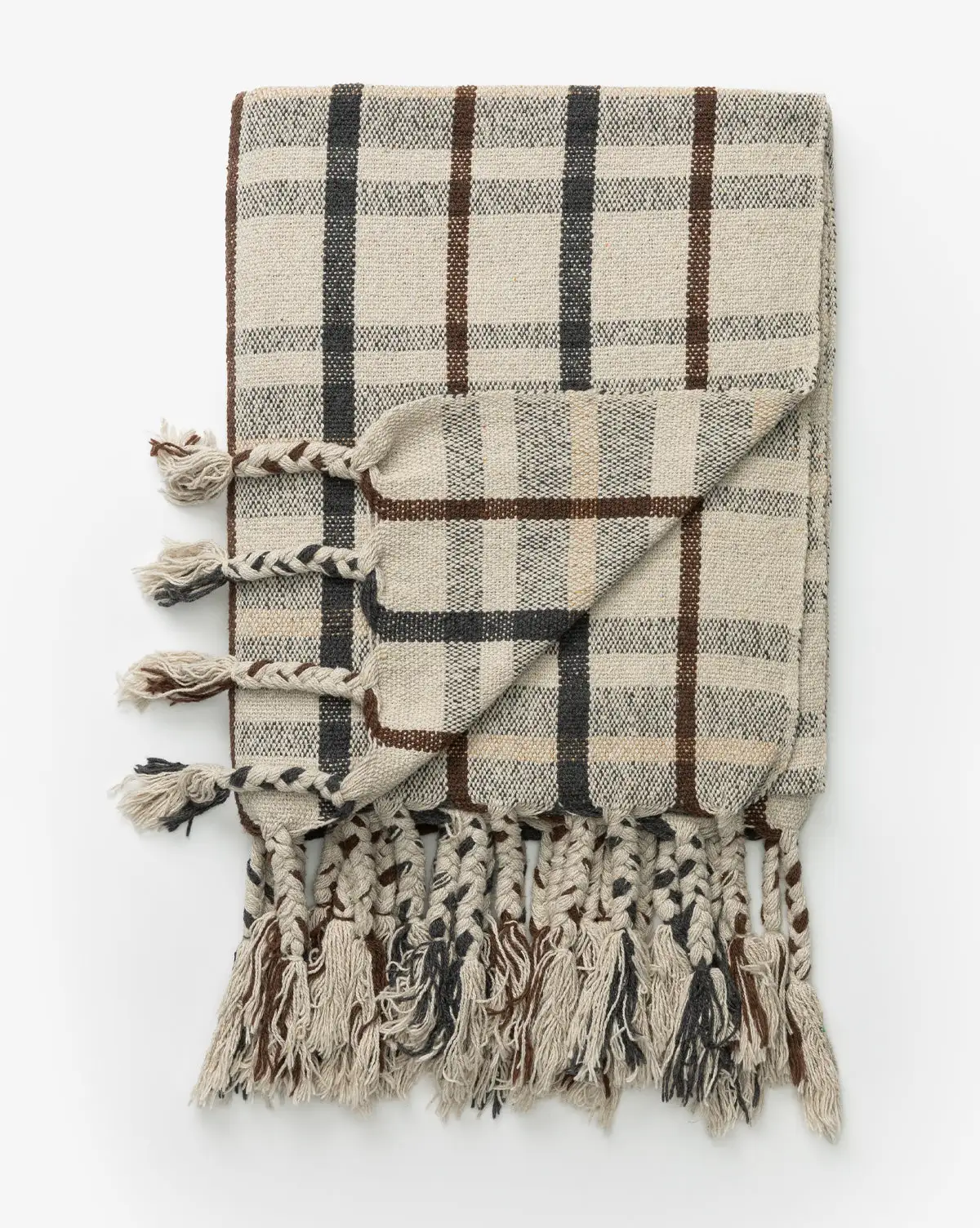 Woven in a classic plaid pattern, the Plaid Tasseled Throw adds depth to your textiles with its warm hues and inviting design. The motif itself is structured and allows the eyes to rest, while the braided tassels add lived-in playfulness to your style.