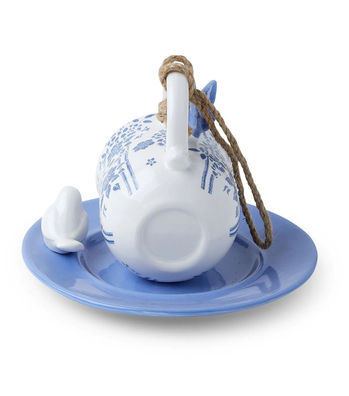 Welcome your feathered friends this spring by making the Spring Blue & White Ceramic Teacup Bird Feeder by Place & Time a part of your outdoor decor. This beautiful bird feeder resembles a cup placed on a saucer with a bird beside it. You can team it with a birdhouse and birdbath, and hang them from a bracket hook, sold separately, on your porch or balcony.