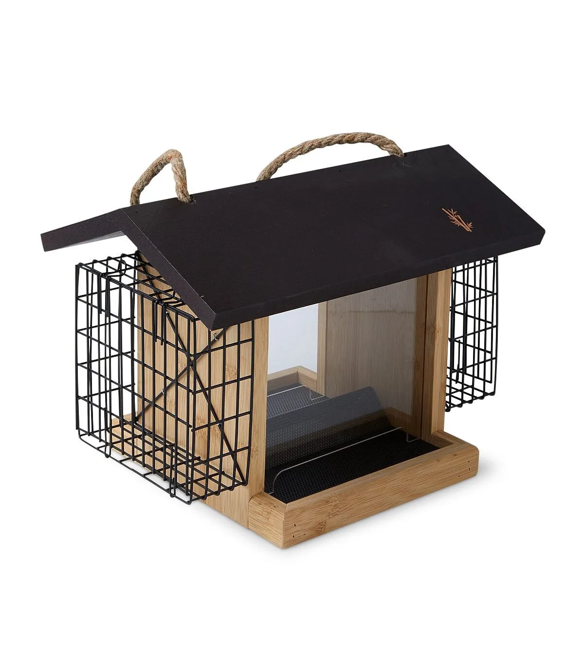 Give the fleeting birds food by hanging the Spring Bamboo Two Sided Bird Feeder by Place & Time in your front yard. This bird feeder is made of bamboo wood and steel wire. It can hold seeds and suet cakes for the birds. A string loop at the top makes it easy to hang. You can also team it with a birdhouse and give them as a housewarming gift to a friend.