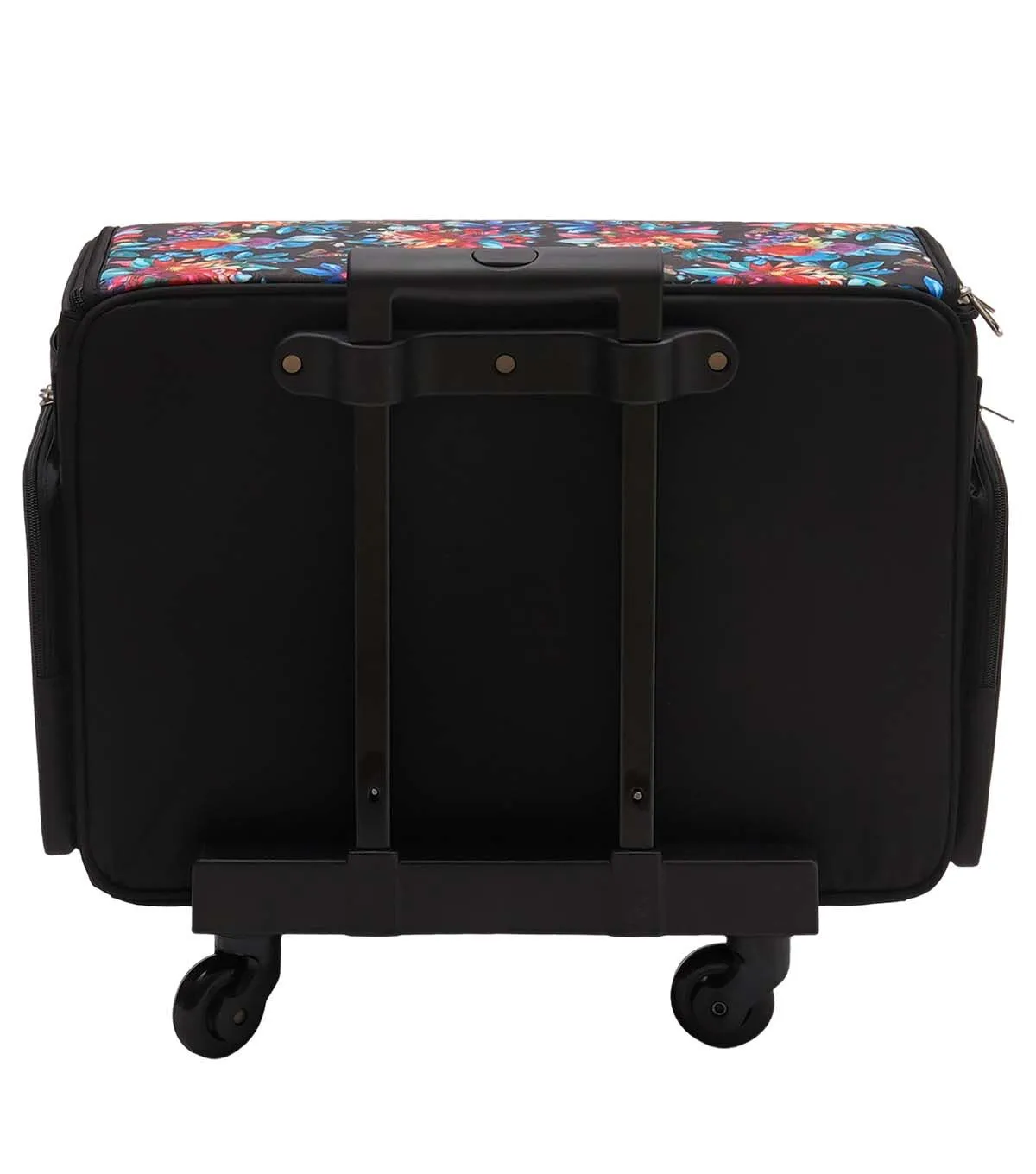 Stay Organized and Stylish with the 13" x 18" Floral & Butterfly on Black Rolling Sewing Storage Tote by Top Notch