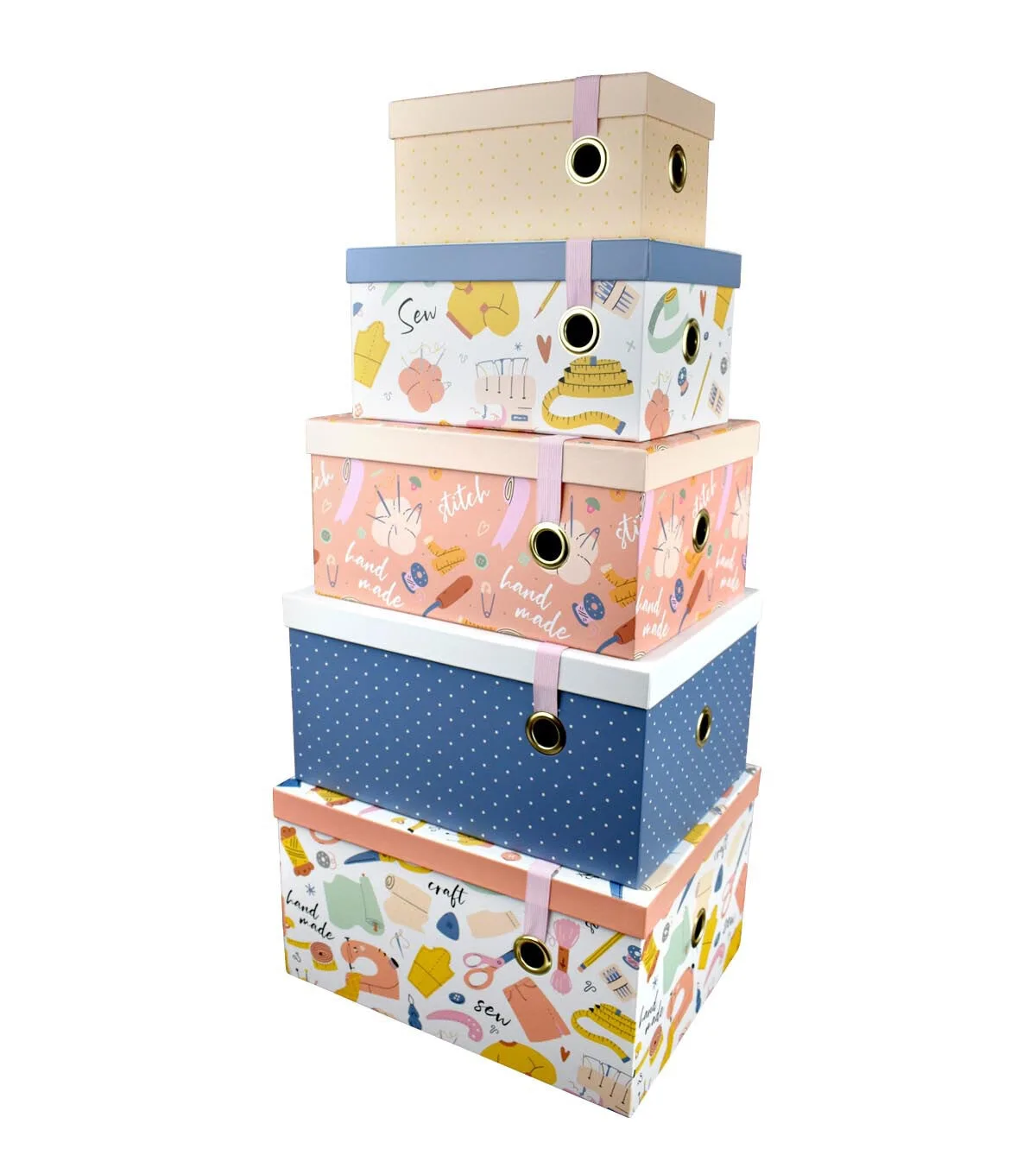 The Hudson 43 Extra Large Steamer Box with Elastic Strap - Sew & Craft will help you keep your home organized. This decorative storage box flaunts a print of sewing and craft essentials in bright shades. It comes with a lid that is secured with an elastic band. You can use it to keep your craft and art supplies organized.