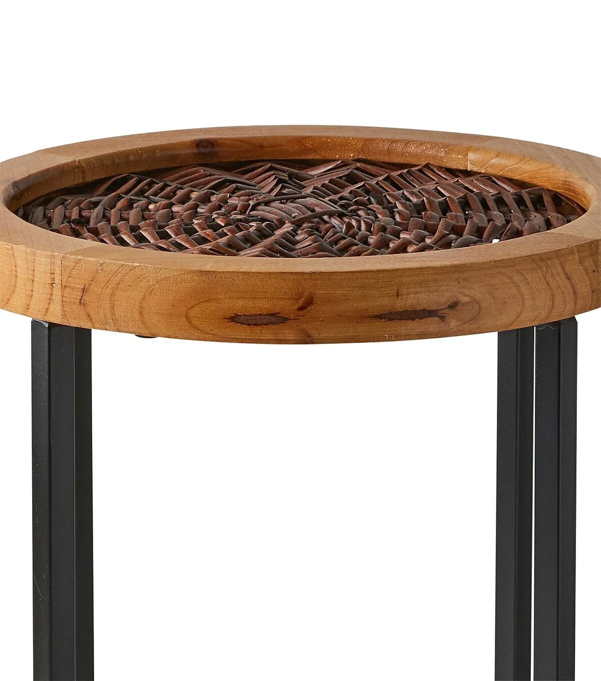 Add a touch of natural beauty to your outdoor decor with the 17" Spring Rattan Plant Stand by Place & Time. Crafted with a unique blend of fir, rattan, and iron, this plant stand is both sturdy and stylish. The intricate rattan design adds a touch of elegance to any garden or patio, while the iron legs provide reliable support for your favorite plants.