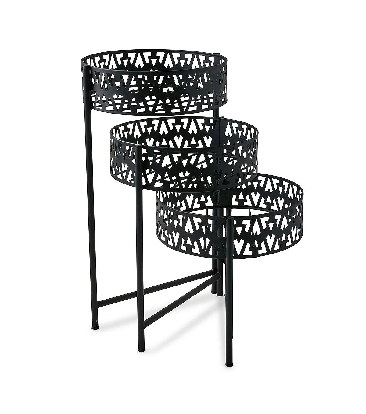Use the Spring Black Iron 3 Tier Ornate Plant Stand by Place & Time to spruce up your indoor spring decor. This three-tier plant stand sports a black shade and intricate patterns for a unique touch. It will look lovely when teamed with pots of fresh flowers or succulents. Display it in your living room or near the entrance of your home.