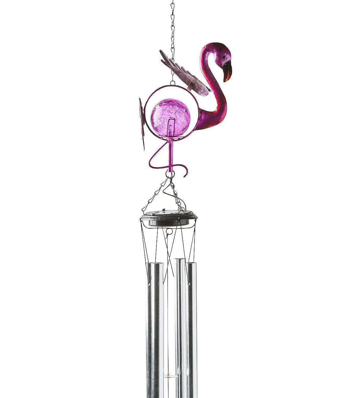 Add a tropical vibe to your patio this spring with the Spring Pink Iron Flamingo Solar Windchime by Place & Time. This beautiful wind chime is designed with a flamingo-shaped accent that comes with a solar-powered bulb. You can also hang it from a tree branch in the garden.