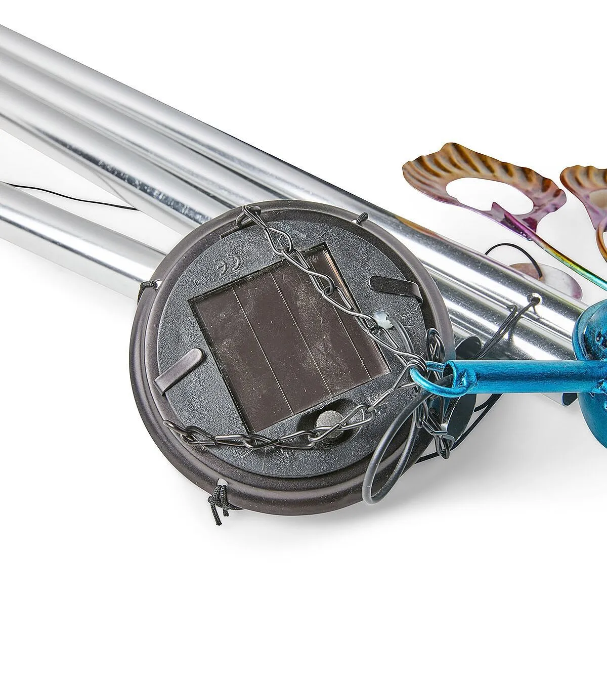 The Spring Blue Iron Peacock Solar Windchime by Place & Time will make a lovely addition to your outdoor decorations. This wind chime is designed with a beautiful peacock-shaped accent at the top. It comes with a solar-powered bulb that lights up in the dark. You can hang it in the garden from a tree branch or on the porch.