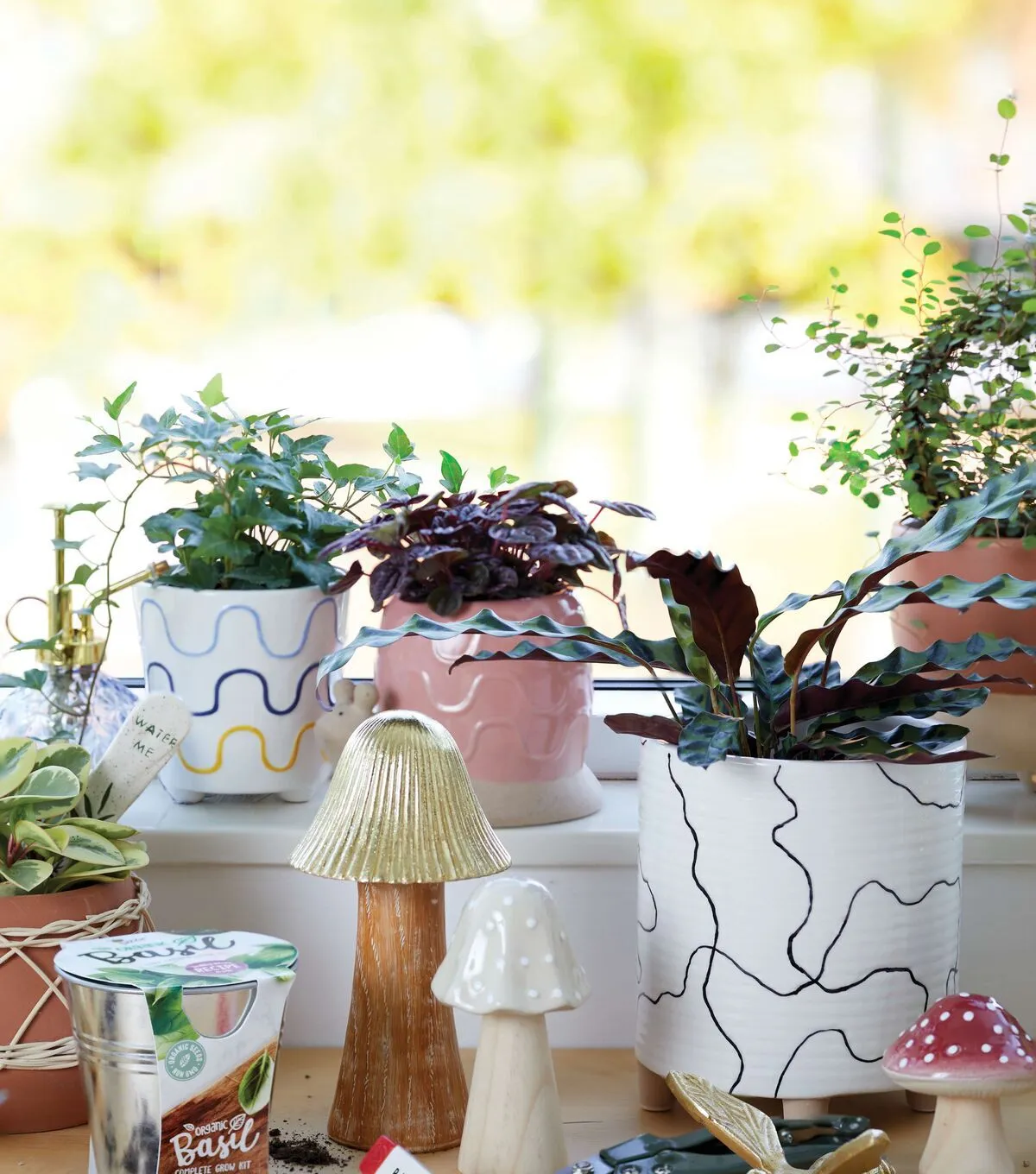 Perk up your outdoor decor with the Spring Black Squiggle Lines on White Planter by Place & Time. Sporting a chic print of squiggle lines in black, this white planter will lend a contemporary look to any space. It is designed with short legs for ease of display. You can use it to showcase your flowering plants or succulents.