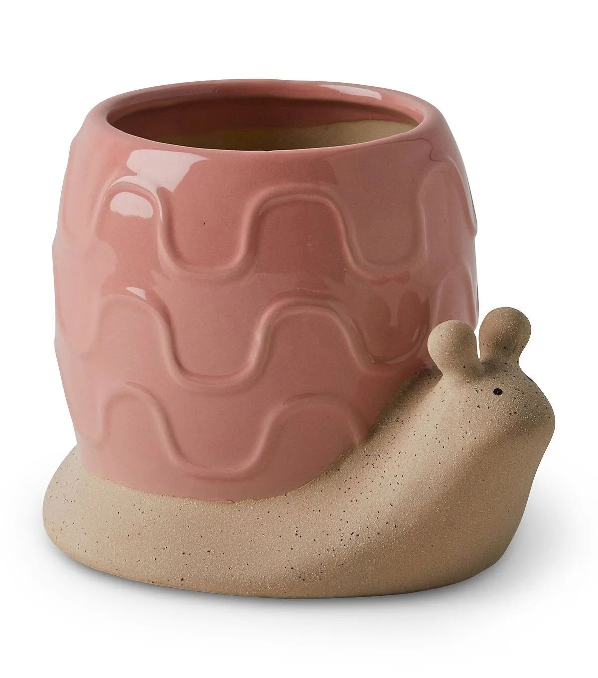Create a beautiful floral arrangement by adding colorful flowering plants to the Spring Pink Ceramic Snail Planter by Place & Time. This pink ceramic planter flaunts a textured finish and is attached to a snail figurine. You can display it on the mantelshelf, entryway table or a windowsill. It will also make a lovely addition to your office decor.