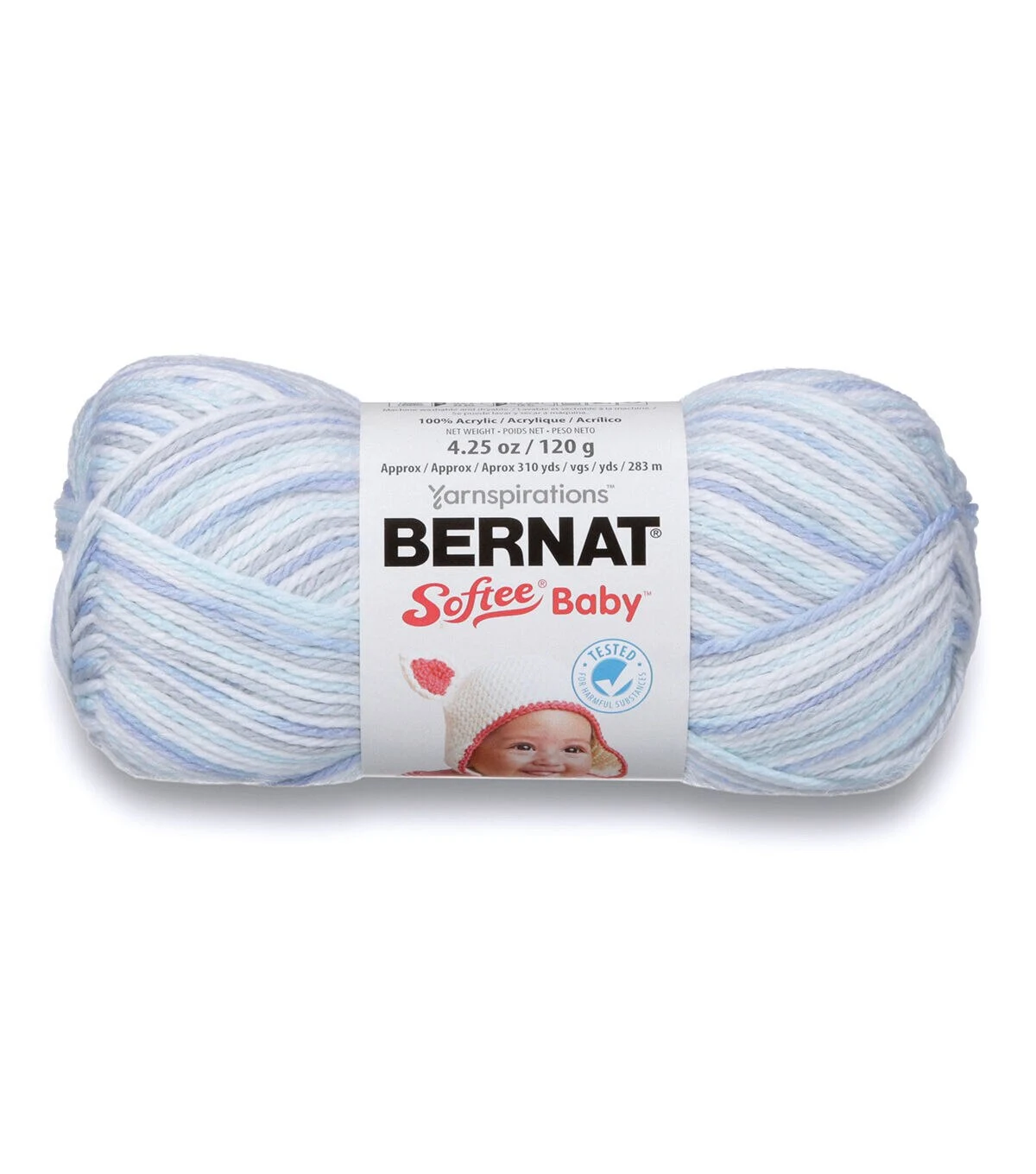 Bernat Softee Baby is a classic, light weight baby yarn, perfect for knit and crochet baby garments, accessories, and home decor. Available in a range of traditional baby shades, including solids and ombres. Bernat Baby yarns are OEKO-TEX certified, and are tested for over 300 harmful substances and proven to be safe for your baby's sensitive skin. Conveniently machine washable and dryable for easy care.