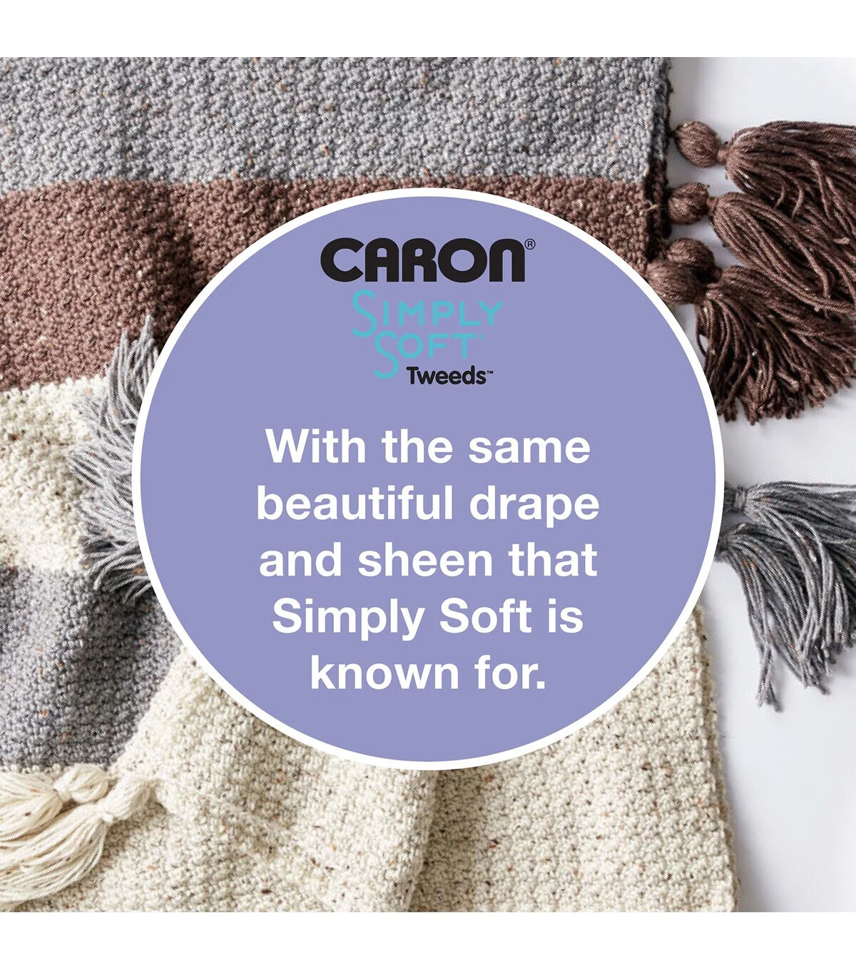 Caron Simply Soft Tweeds takes classic neutral colors of favourite Simply Soft, and adds a lovely tweed effect. This yarn is perfect for all your knit and crochet projects with the same beautiful drape and sheen that Simply Soft is known for. Create an heirloom effect by using Simply Soft Tweeds for all your worsted weight projects like sweaters, accessories, and blankets. Easy care – machine wash and dryable.