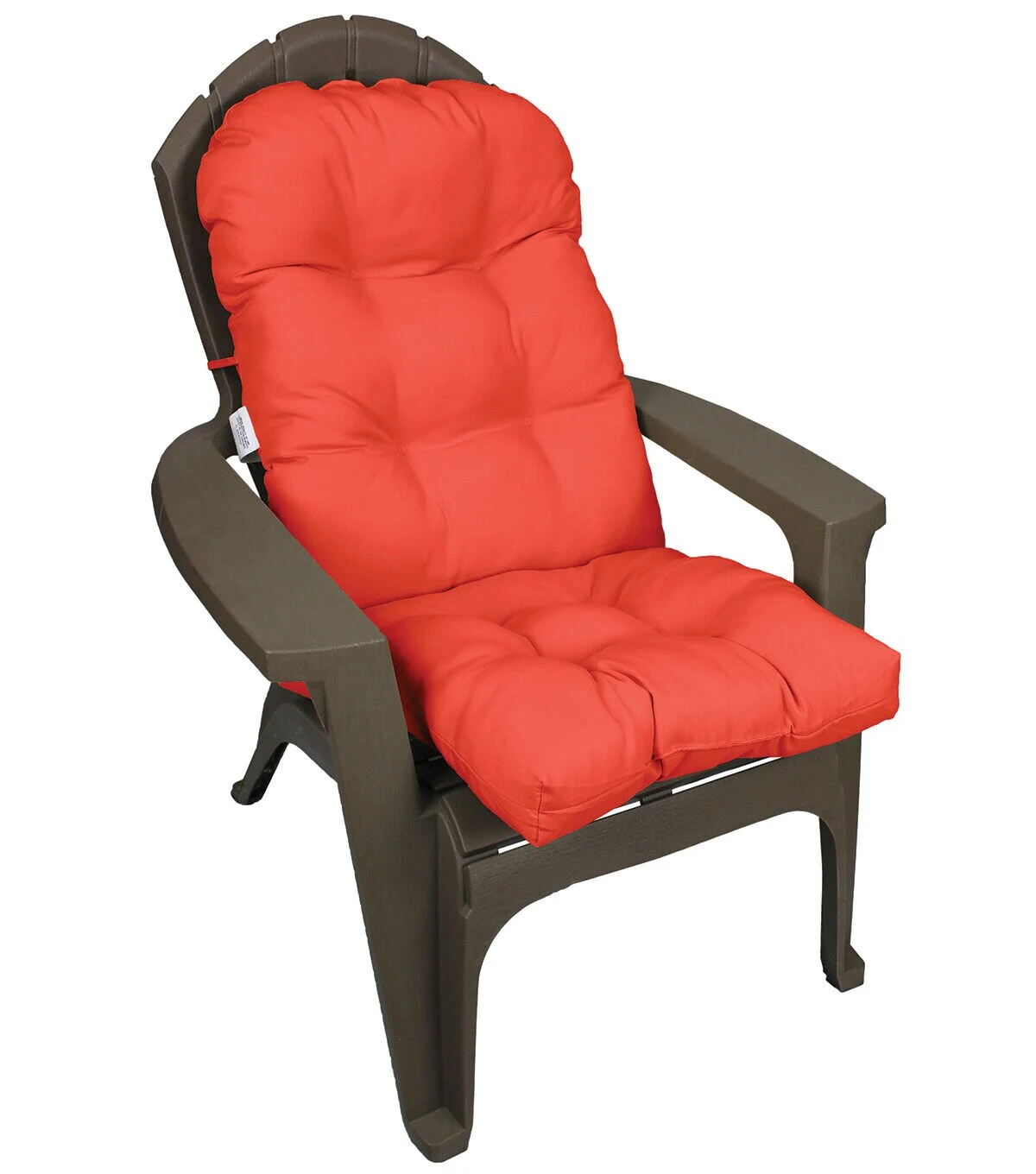 This Adirondack cushion is a great addition to any standard patio chair, firepit Adirondack, really any chair needing some comfort or color. Our cushion is made with 100% polyester for great color and durability, it will work great for both indoor or outdoor use. Seat cushions are filled with a 100-percent polyester fiber sourced from North Carolina and filled right here in Nebraska. Attached ties keep the cushion securely tied to your favorite Adirondack chair, also works well on a rocking chair. The Adirondack cushion is also circle tacked to eliminate bunching of filling for a perfectly comfortable seat. Lightly spot clean or hand wash with a mild detergent and cool water, allow to air dry. When the cushion is laying flat, it measures 45 inches long x 20 inches wide x 3 inches high. When the cushion is in a chair, the bottom seat cushion measures 18 to 20 inches wide and 16 to 18 inches deep, and the top or back part of the cushion measures up 22 to 24 inches. Does not include a chair, cushion only. To maximize the life of our cushions, we recommend to store them out of the sunlight when not in use.