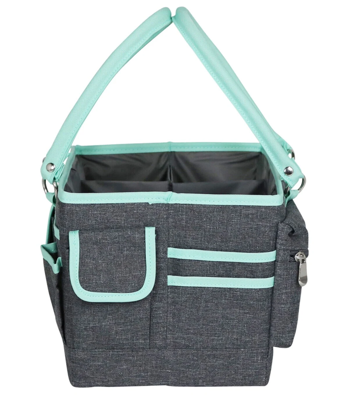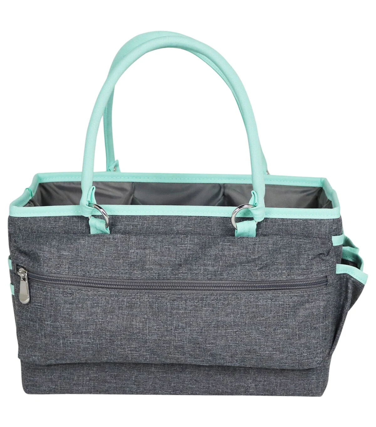 The Everything Mary Deluxe Store & Tote Organizational Bin comes in several timeless prints. Each tote is constructed from high-quality 300 deniers and features embossed chrome logos and zippers, giving a classy and elegant look. This higher-end polyester ensures your craft supplies are safe and long-lasting. With two reinforced strong handles, you can bring this tote anywhere. Different slots, pen loops, and pockets provide multiple options for your home, garage, craft, or nursery.