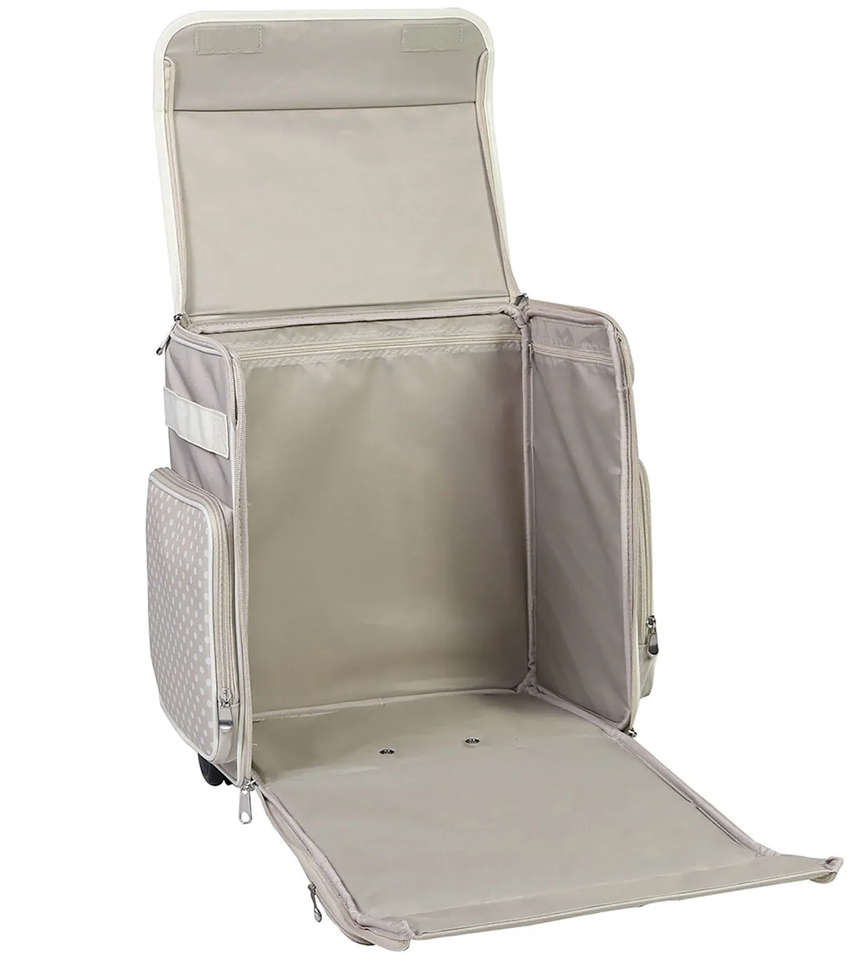 The Everything Mary Collapsible Rolling Craft Bag is the ultimate storage solution for any storage needs. This rolling organizer cart is constructed with durable polyester and features premium zippers, piping, and an Everything Mary emblem. Seventeen total storage spaces are built into this scrapbook storage case for all of your tools, sewing notions, or other supplies. The main compartment on this rolling craft organizer is perfect for scrapbooking IRIS boxes, paper, crafts, containers, and so much more! In addition, this scrapbook rolling tote features a telescoping locking handle and a durable wheelset for secure craft storage—the Everything Mary Collapsible Rolling Craft Bag was made with crafters in mind.