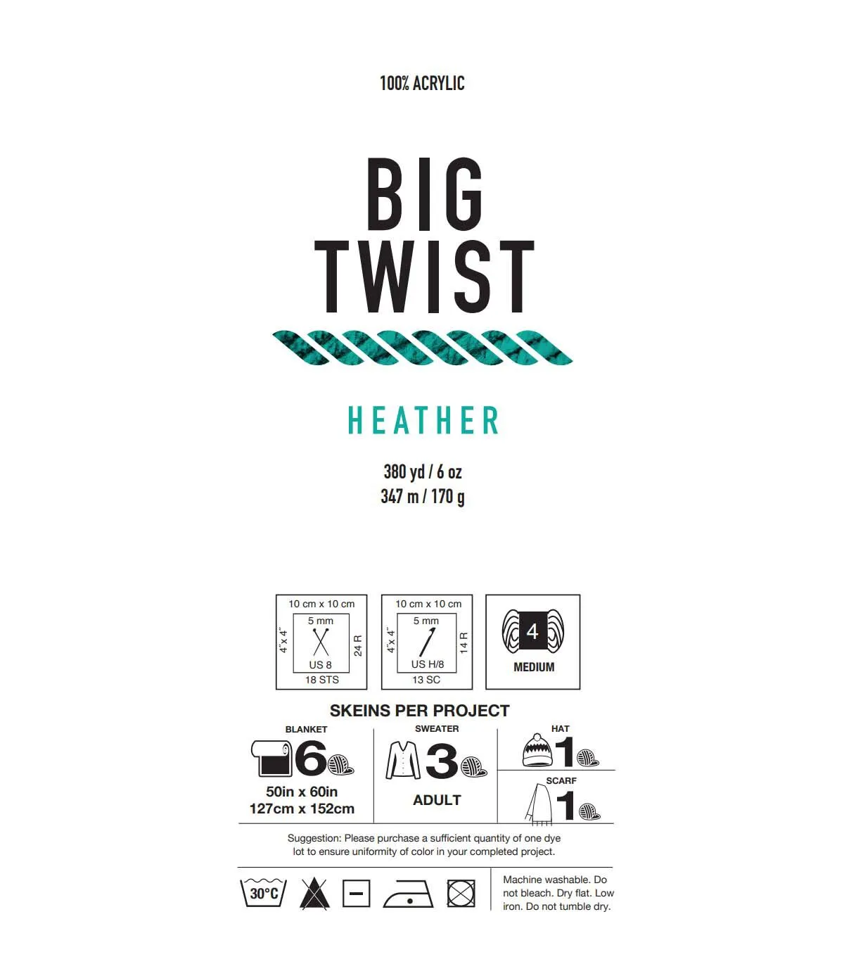 Big Twist Heather Yarn is a yarn for big projects that just need to be made. Durable, functional, and affordable, this yarn is perfect for afghans, family projects, and all of your charity needs.