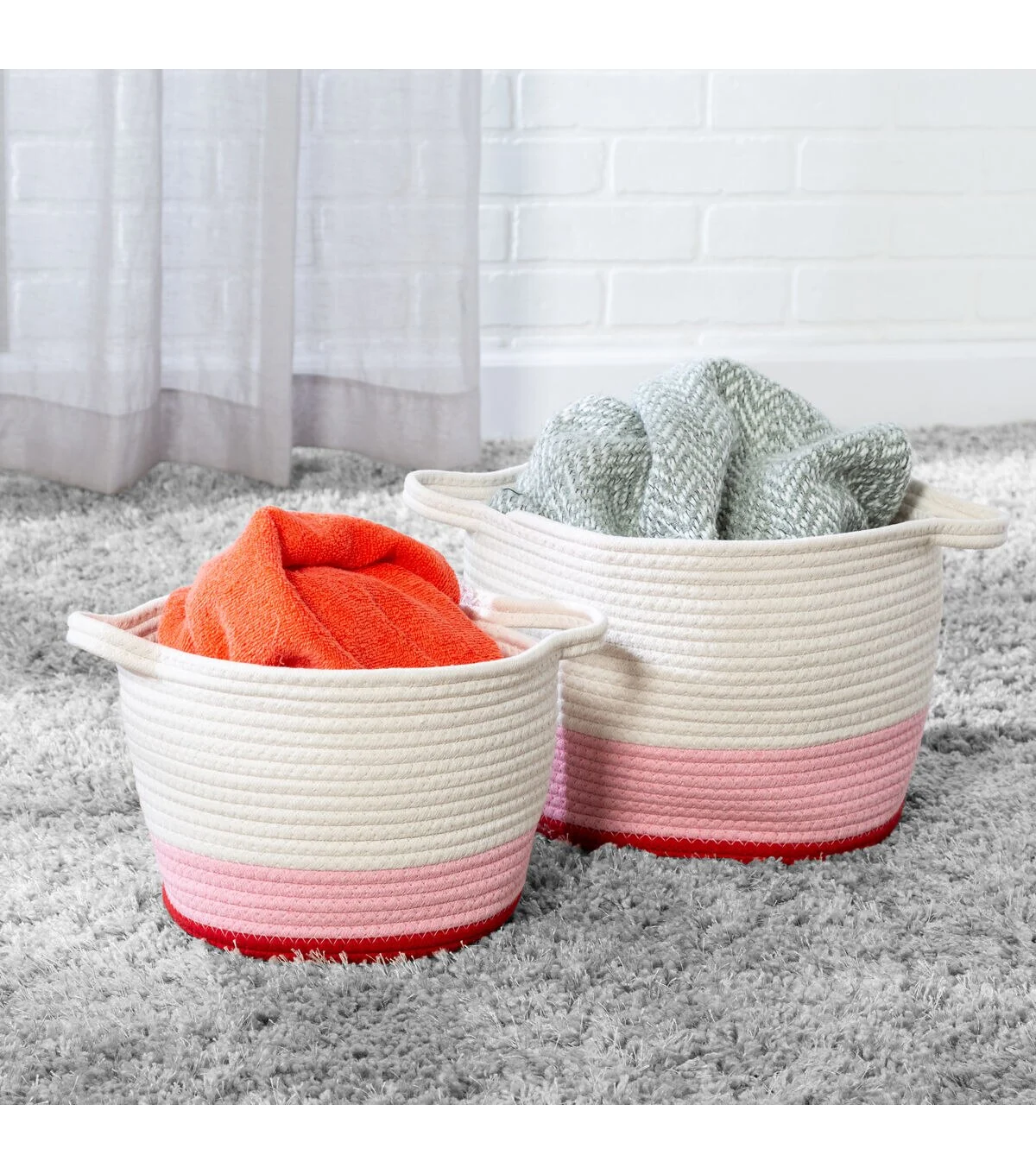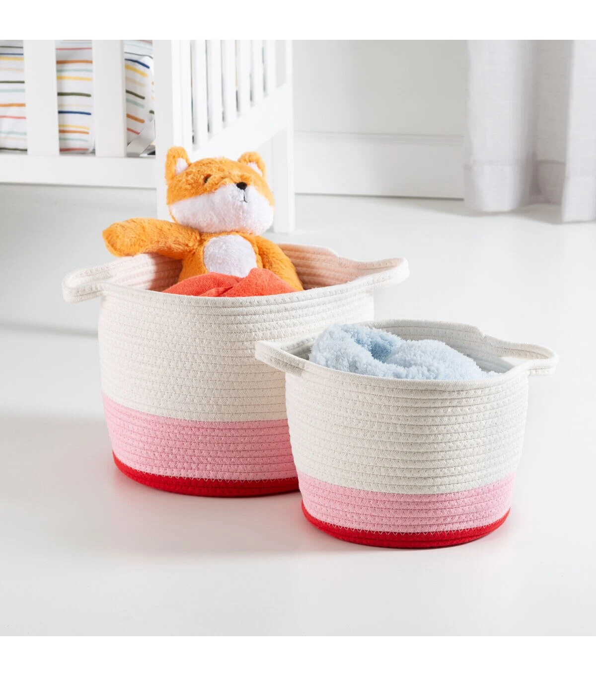 - Smaller basket nests inside larger one to save on space when needed