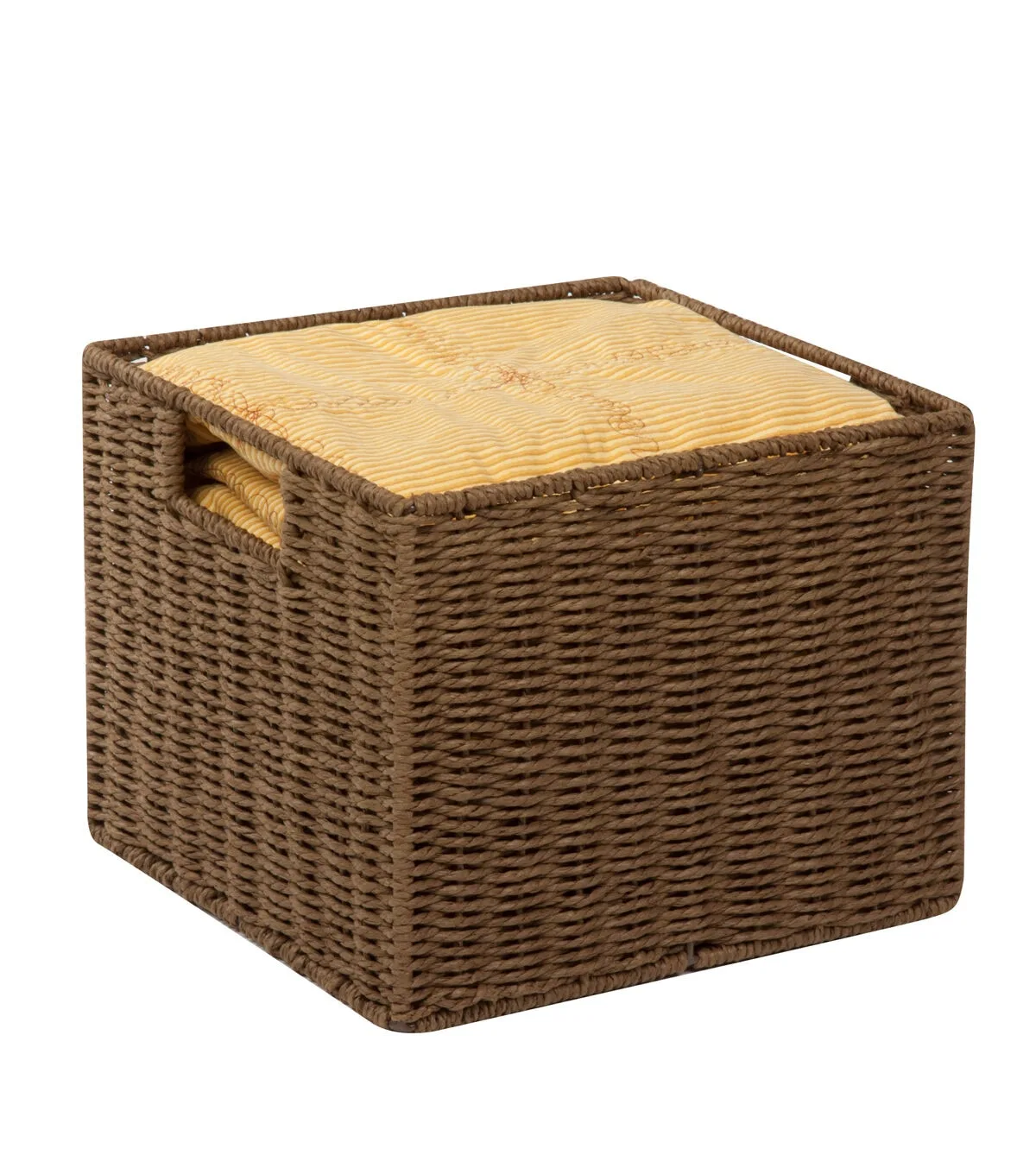 Get clutter in order with this storage basket with liner. Ideal from the kitchen to the bathroom to your home office, this crate works in any room in your home and its easy-grip handles help you get it there. You can feel good carrying it with its recycled and re-purposed parchment, and the tan liner adds an earthy tone to your aesthetic.
