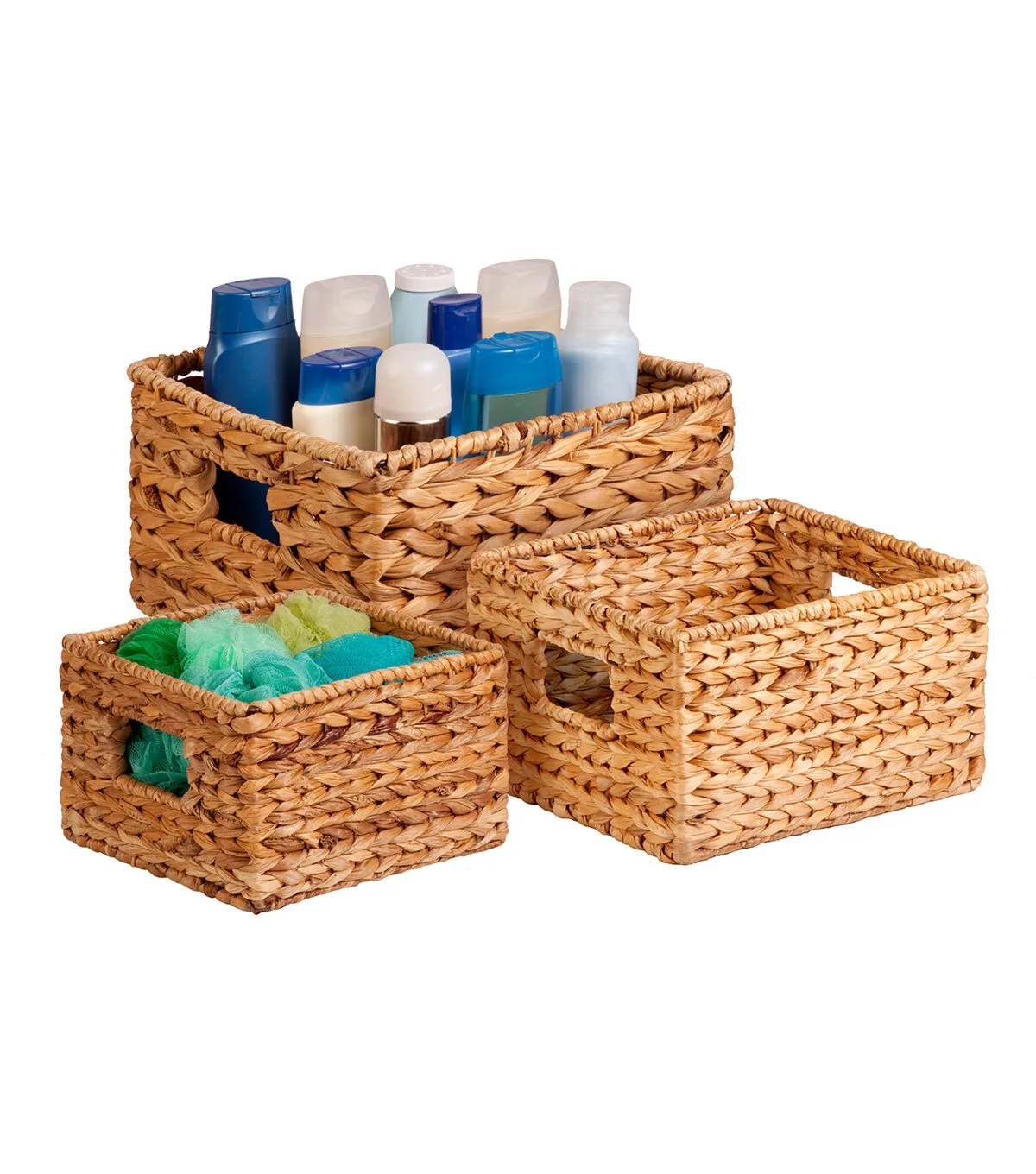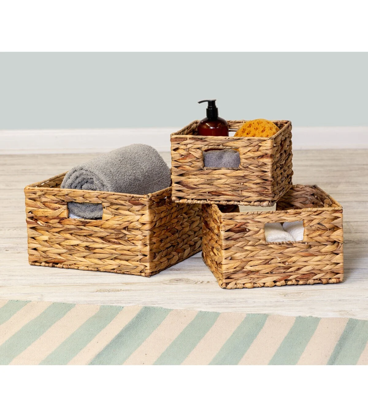 - Baskets nest nicely and range in size for varying storage needs