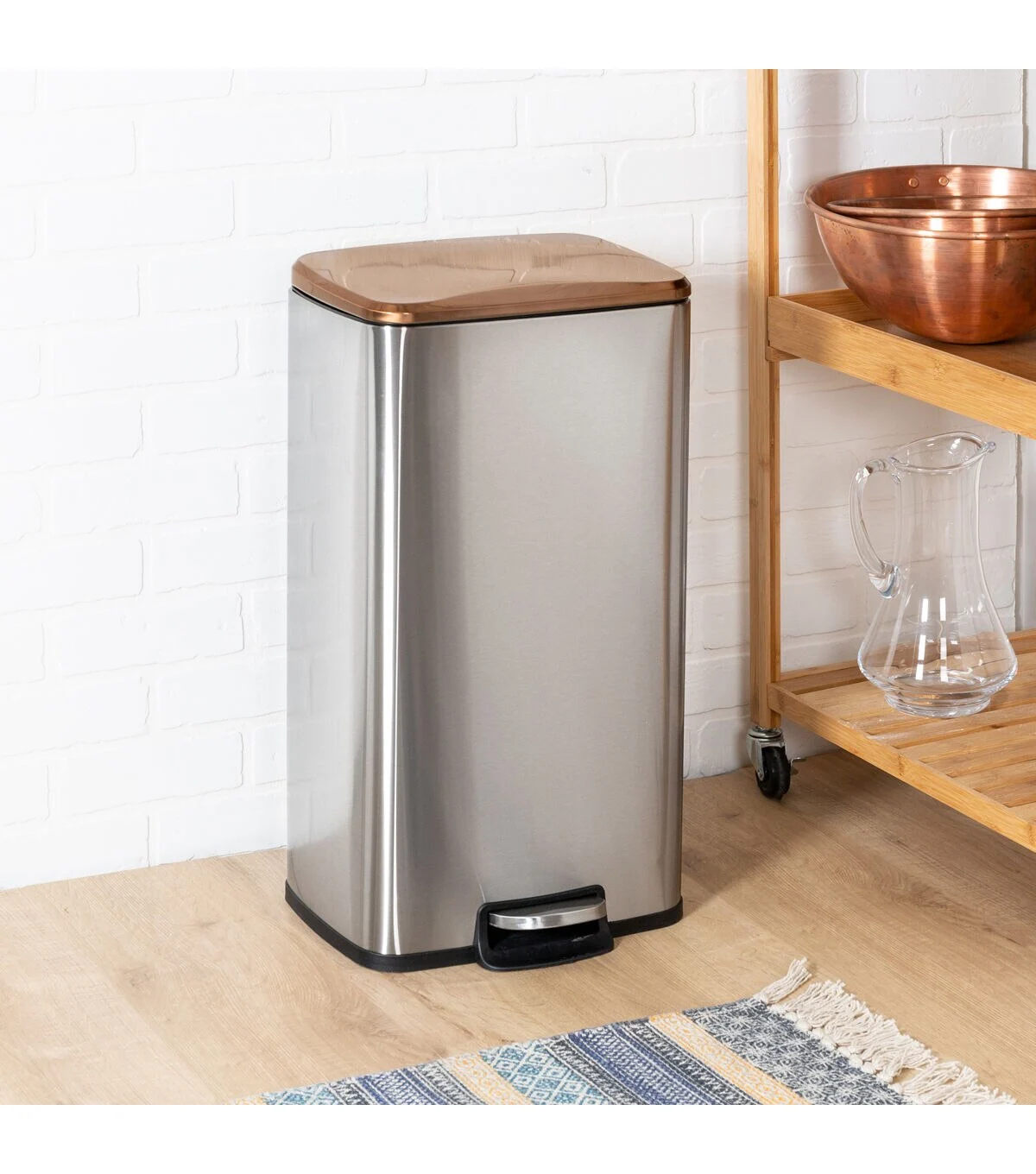 Stainless steel remains popular in kitchen designs, which is why we love the fresh rose-gold accented lids on this set of trash cans. Overall, the stainless steel finish still lends a space the polish and sheen at the heart of its industrial appeal, but while adding a rosiness that's warm and welcoming. Place the larger 30L can in the kitchen, and stash the mini 5L trash can in a home office or a bathroom. Both trash cans in the set function the same, so expect a contactless operation from the step pedal and a soft close from those rose-gold lids. When it’s full, a removable plastic liner makes hauling trash outside a breeze.