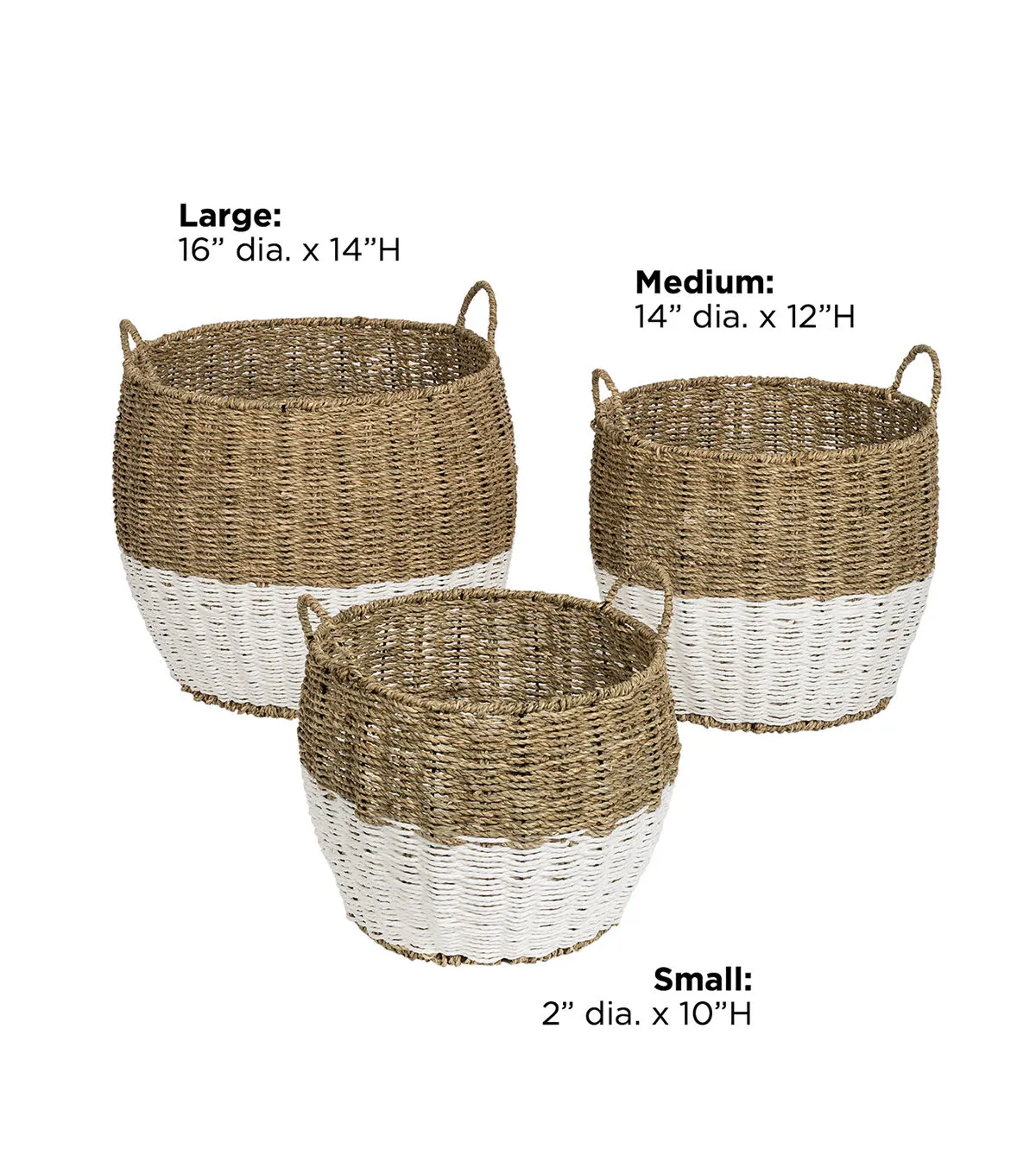 Keep your space, whichever space it is, tidy with these three different-size storage baskets that can hold anything from throw blankets to towels to books. These nesting storage baskets are stackable when not in use for easy storage, and handles make transporting items from room to room simple. In addition to their undisputed functionality, the two-colored seagrass design brings a unique design element to your surroundings.