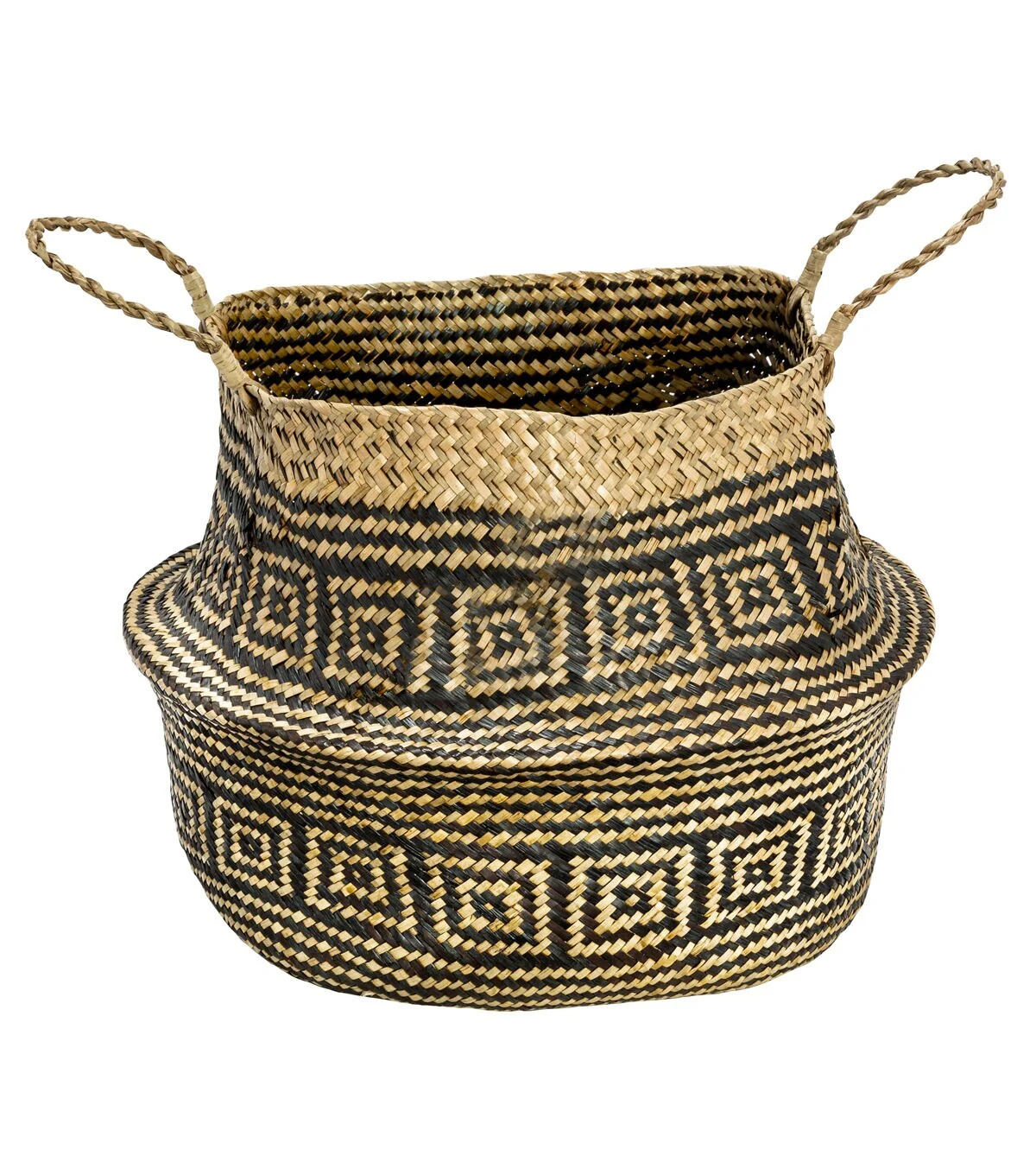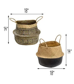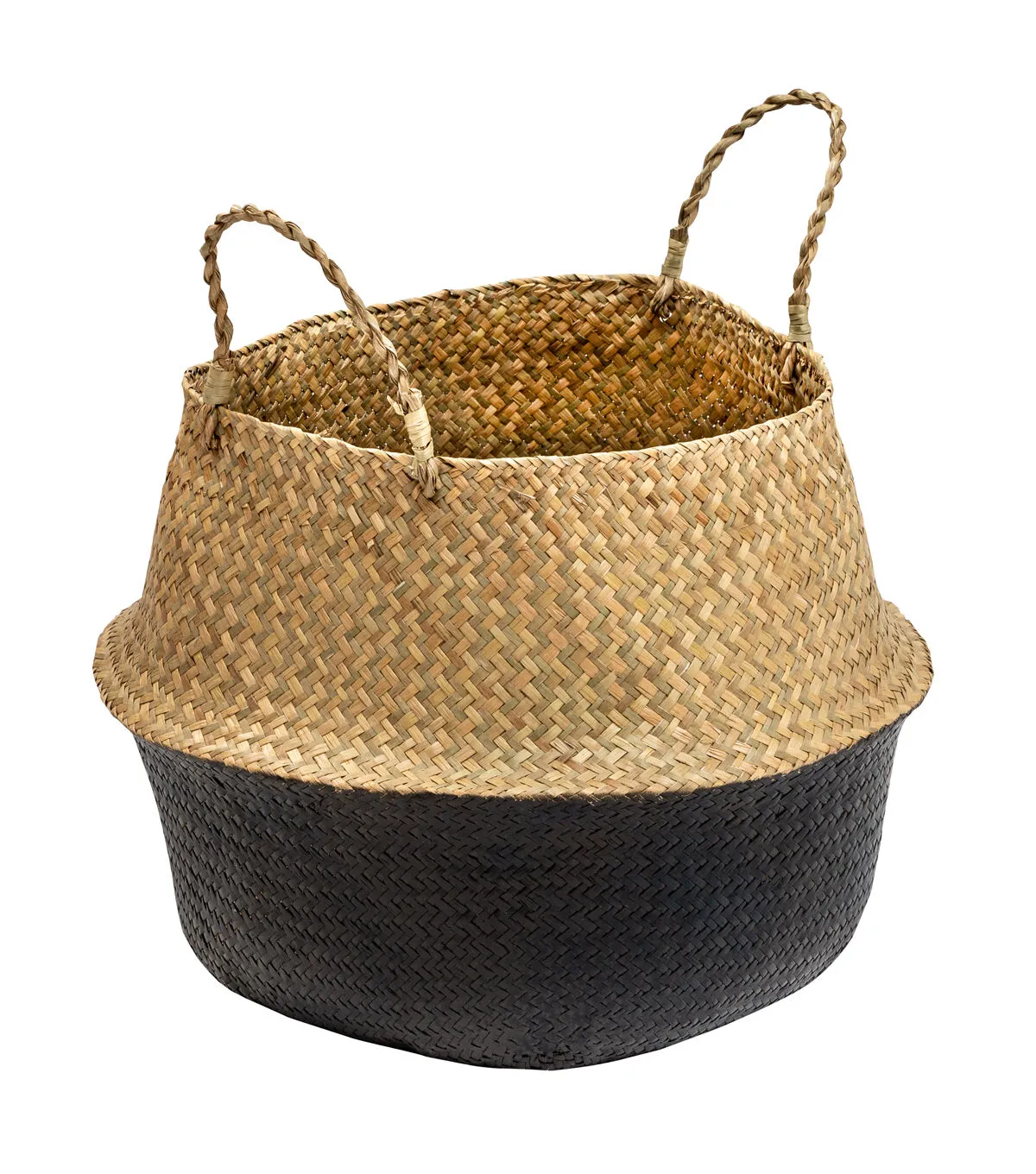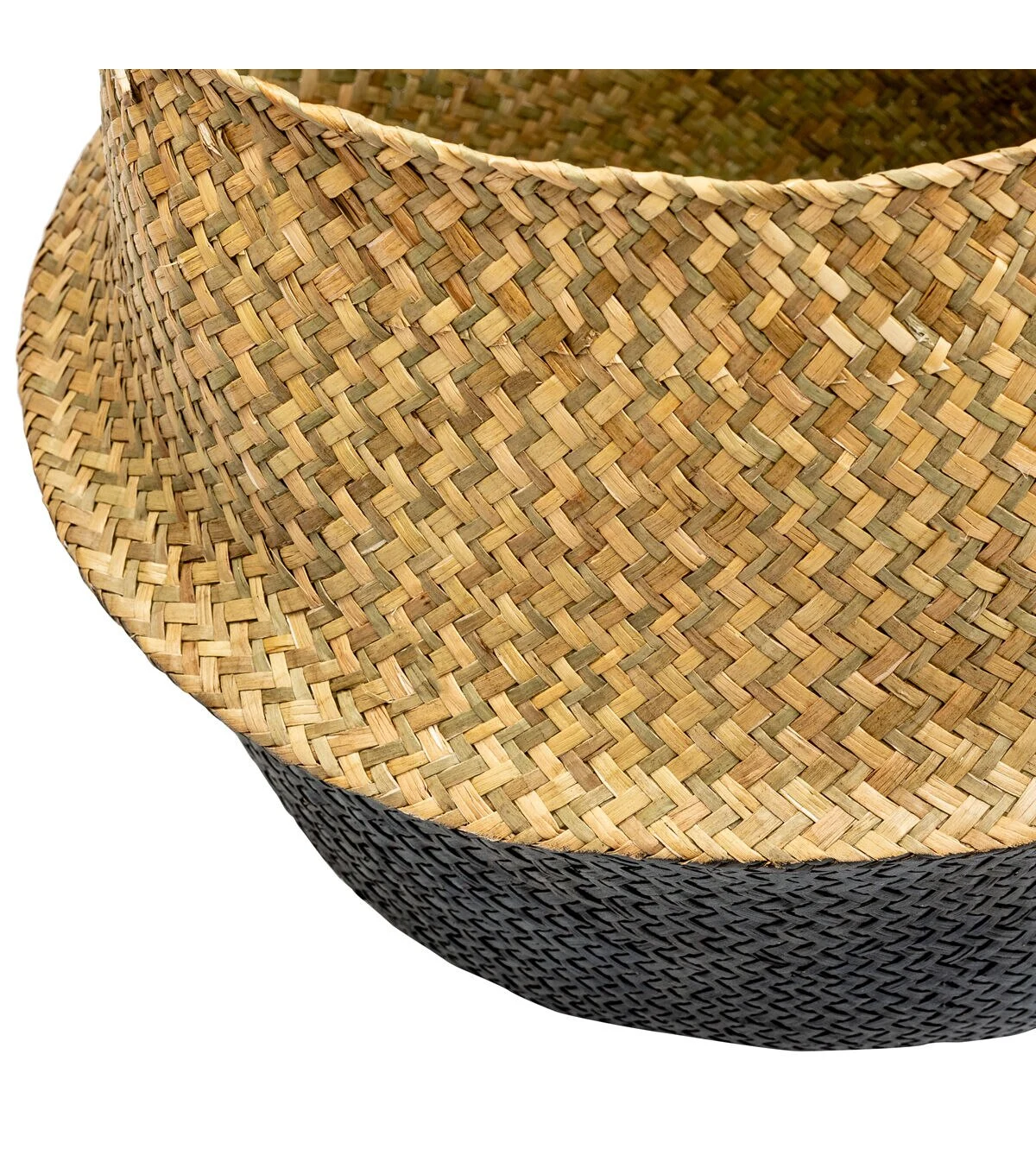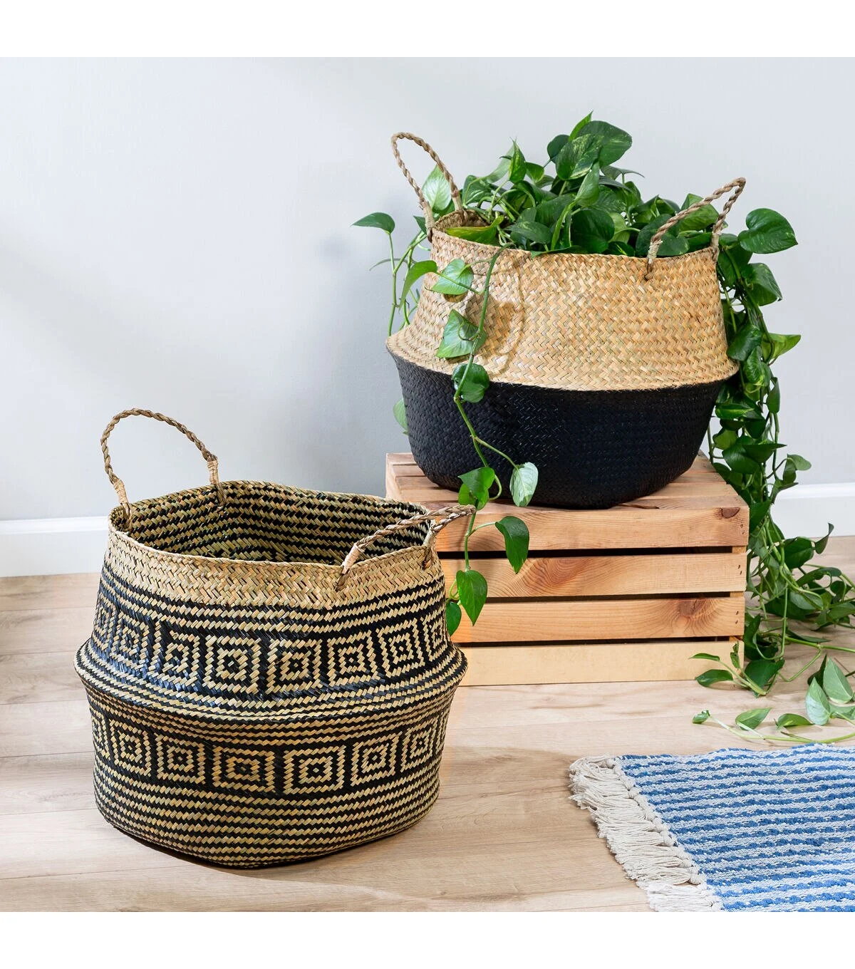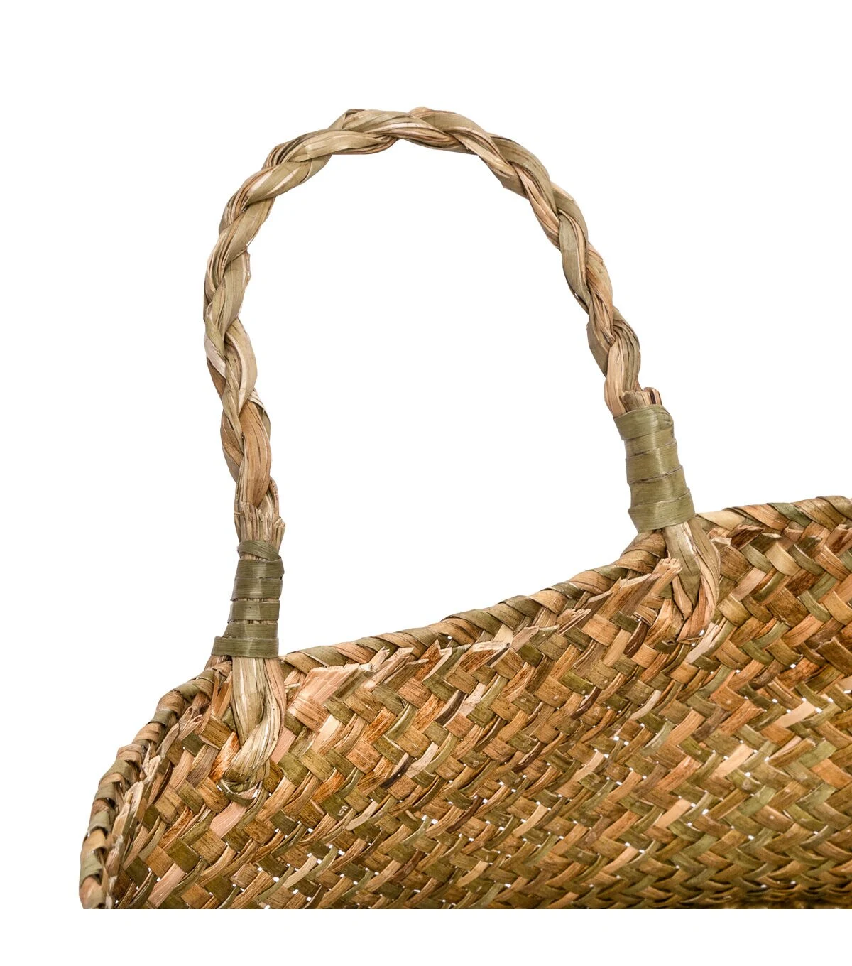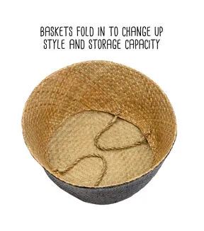 These folding seagrass belly baskets keep your space tidy by acting as catch-all storage for any room in the home. They hold anything from throw blankets to towels to books, even double as a place to showcase large plants. These nesting storage baskets are stackable when not in use and handles make transporting items from room to room simple. In addition to their undisputed functionality, their folding top half design brings a unique element to any space.