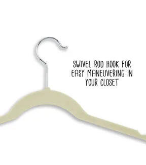 This clothes hanger is contoured to keep shirts, dresses, jackets, and pants perfectly wrinkle-free. Features a 360 degree chrome, swivel rod hook to hang items easily on any closet rod, towel bar, or standard size door. Durable metal construction provides strength, reliability, and long-lasting beauty. Soft velvet coating is gentle on delicate garments and provides a non-slip surface that holds fabrics beautifully in place. Slim, space-saving design makes the most use of available hanging space with its 1/4" profile.
