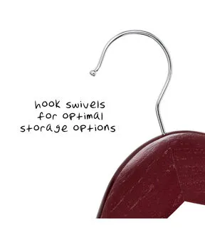 - Swivel hook makes wardrobe reorgs and travel a cinch
