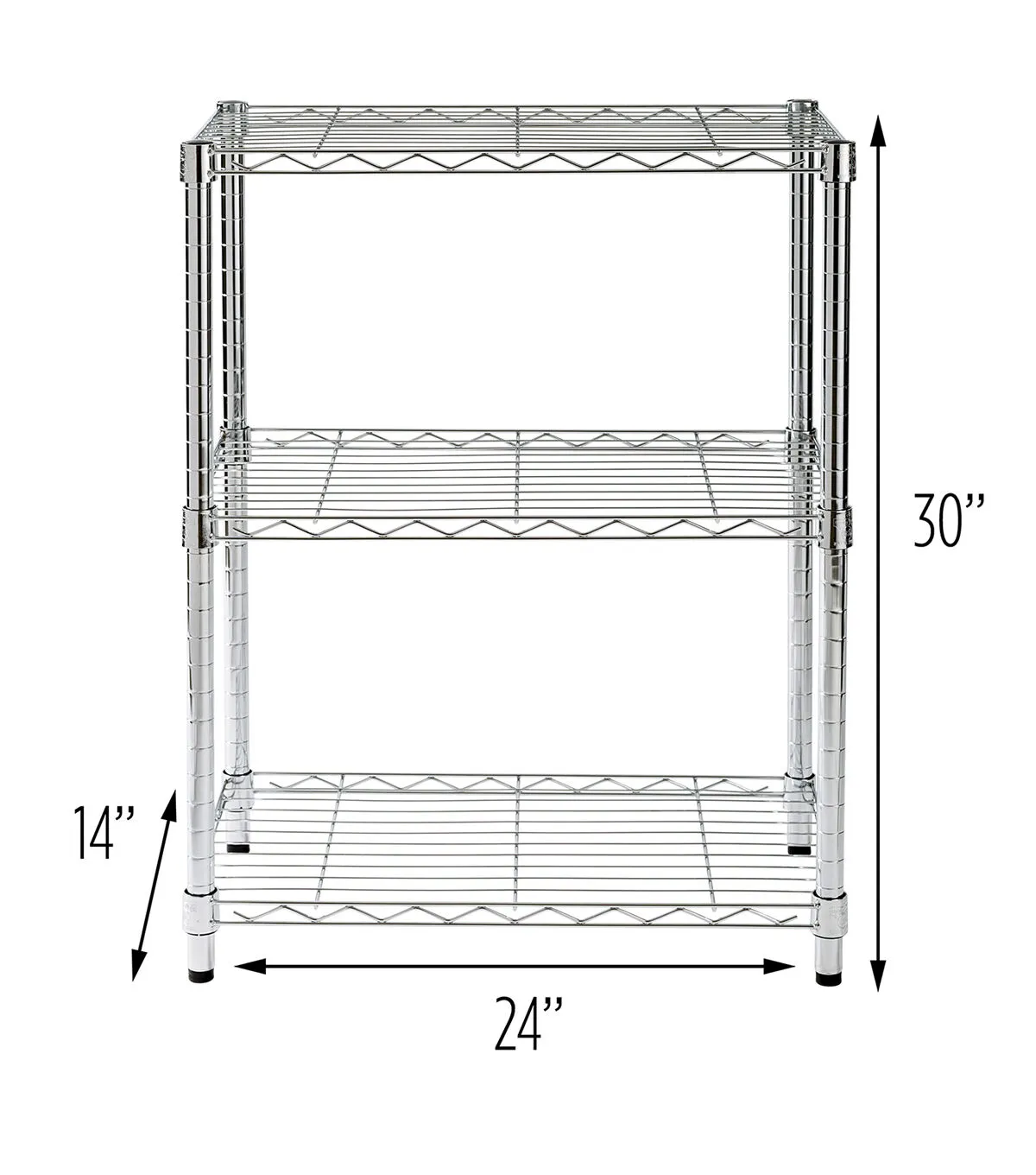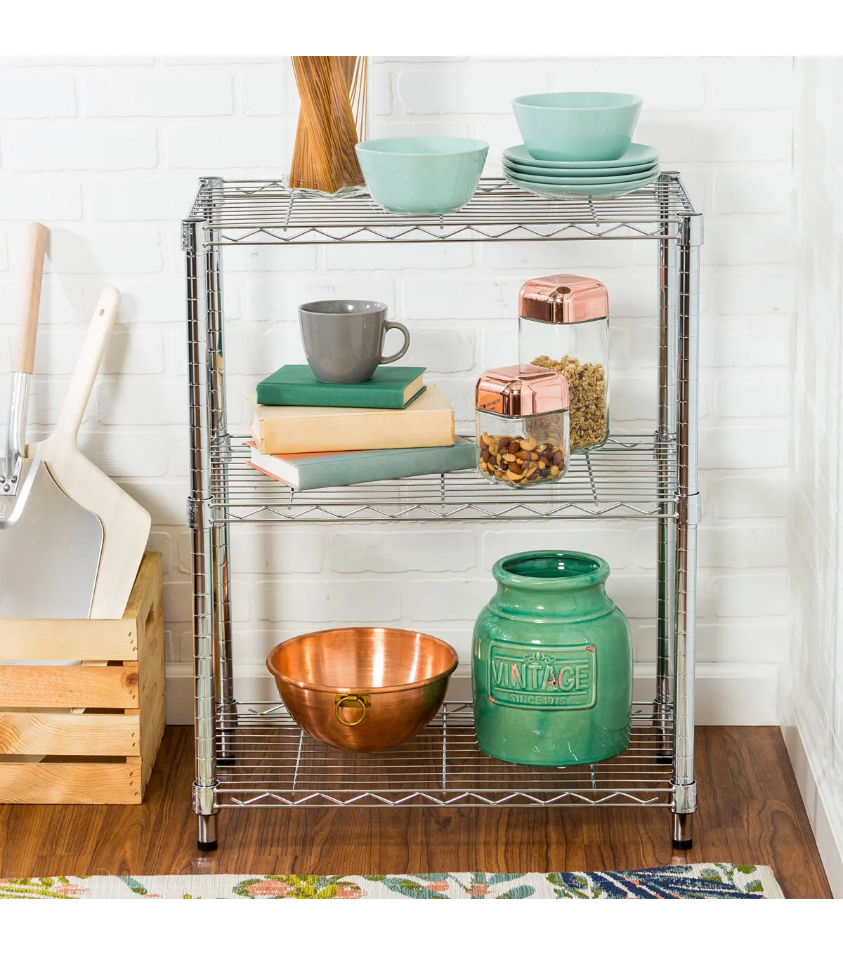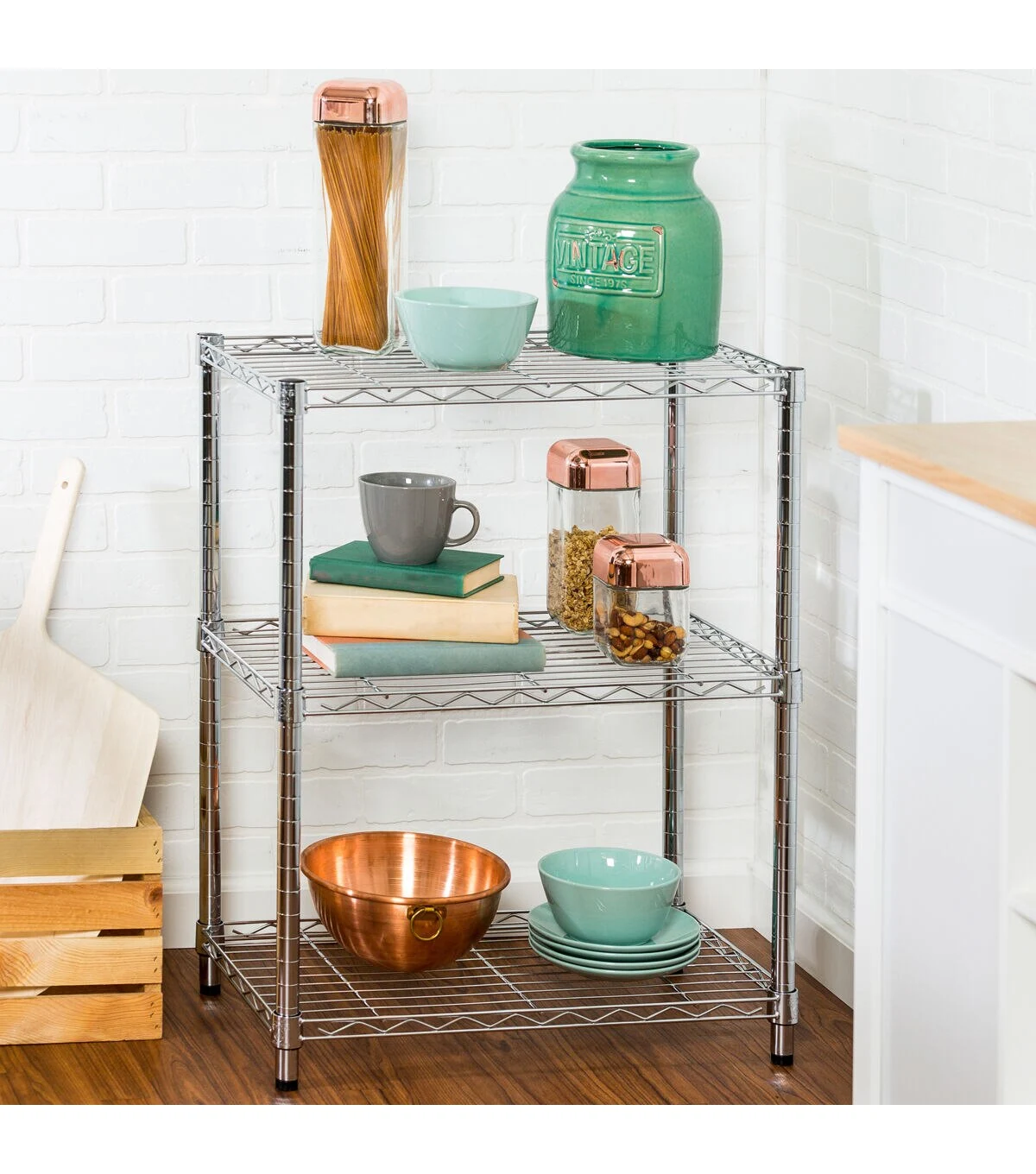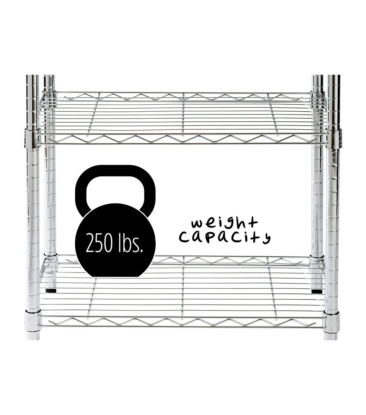 This 3-Tier Heavy Duty Steel Shelving Unit is a storage shelving solution that is a functional masterpiece. Stack up to 250 pounds of weight on each steel shelf, and adjust individual shelf height to suit your storage needs. And while it may be the best garage shelving unit you ever discovered, it's also perfect to store kitchen accessories or in the pantry to hold food and snacks. Equally important, no tools are required for assembly.