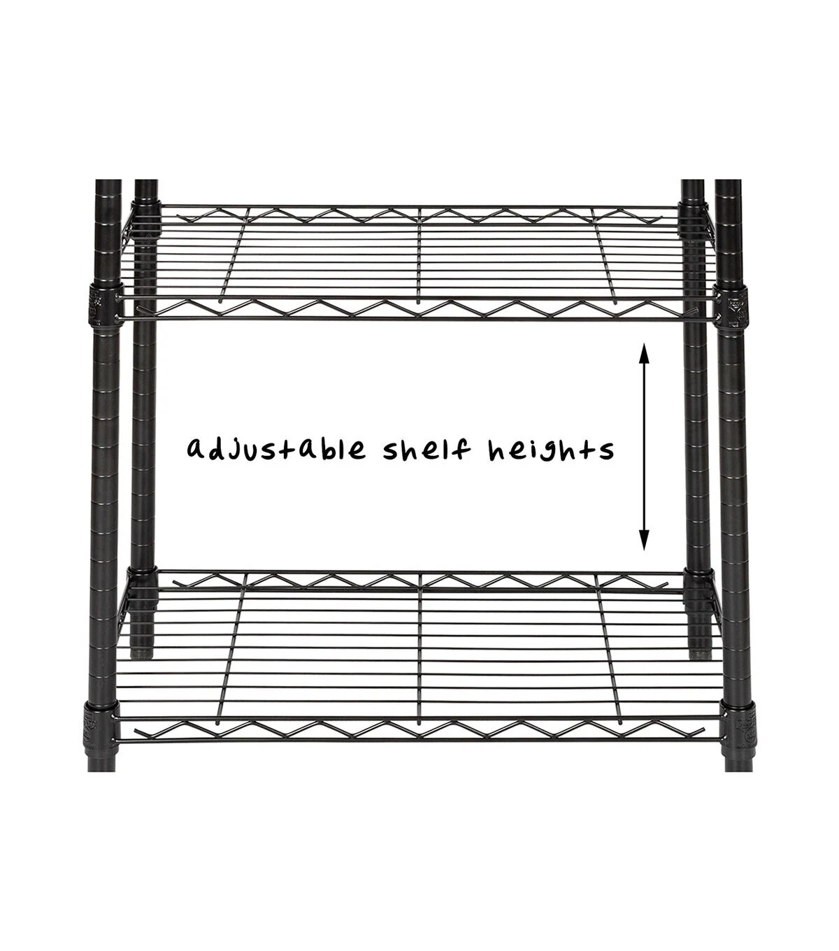You were looking for new closet storage ideas when your sweaters requested a sit down with you. Not only did they ask you to stop putting them on hangers, but they suggested you straighten up your shoe collection, too. That’s when you decided it was time to restore order to your closet with this 3-Tier Heavy Duty Adjustable Black Shelving Unit. Its commercial-grade durability is tough for any of your kitchen shelving needs, or to tame your wardrobe gone wild, while its steel grated shelves allow your garments plenty of breathing room. Easy to assemble and versatile, this adjustable shelving unit also straightens up messes in your basement or garage.