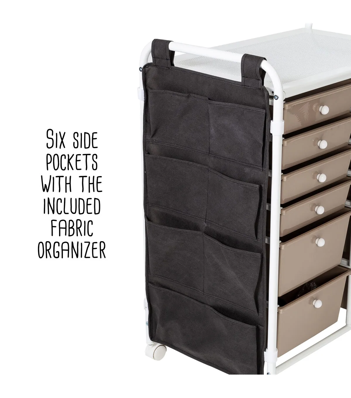 - Six side pockets with the included fabric organizer