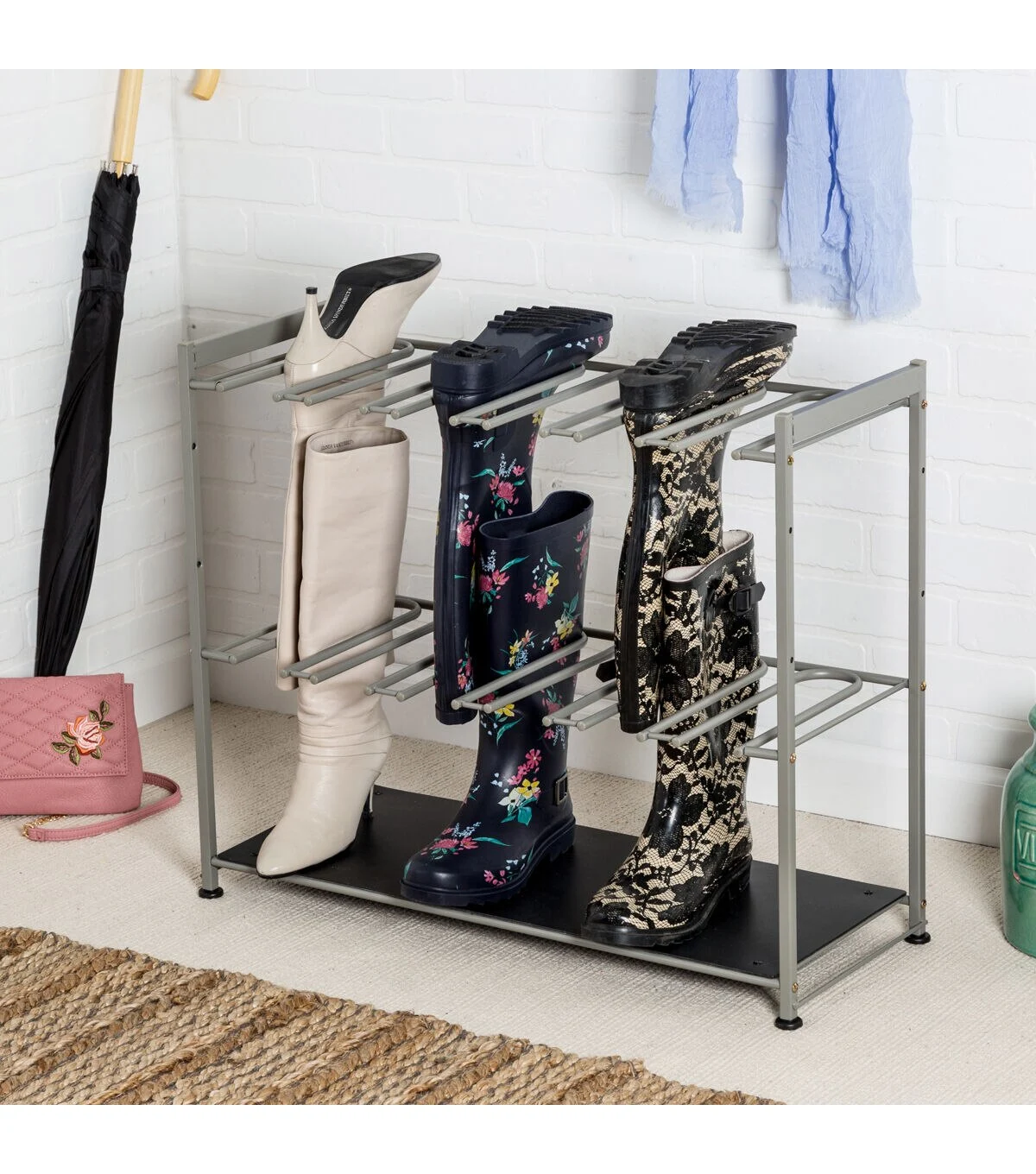 - Organizes up to six pairs of boots